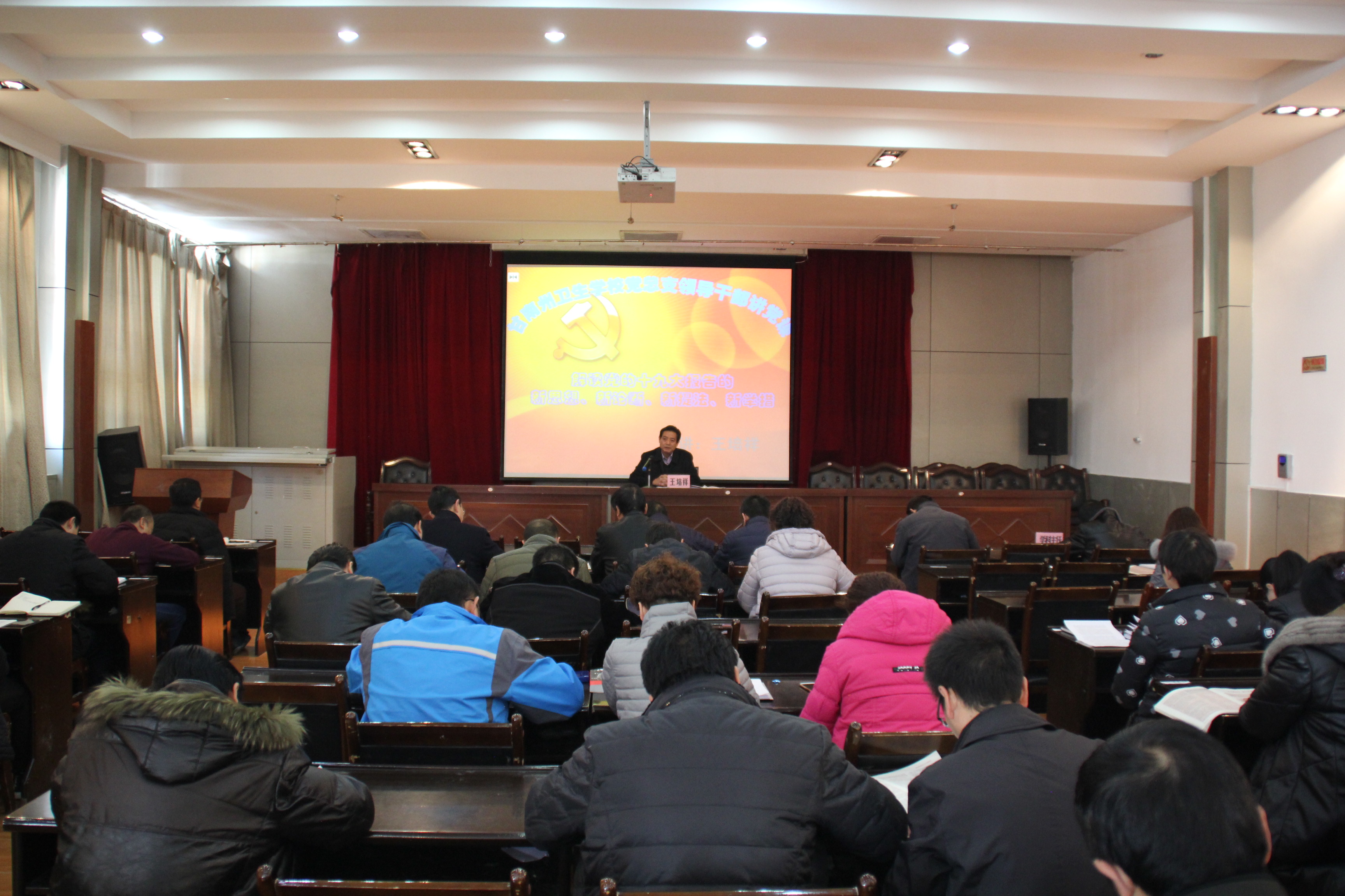 12月8日下午,由州卫公司党总支主办的党的十九大精神宣讲专题会上,副书记、副董事长王培祥同志宣讲的主题是“解读党的十九大报告的新思想、新论断、新提法、新举措”。全校60名党员、科室负责人聆听讲座。