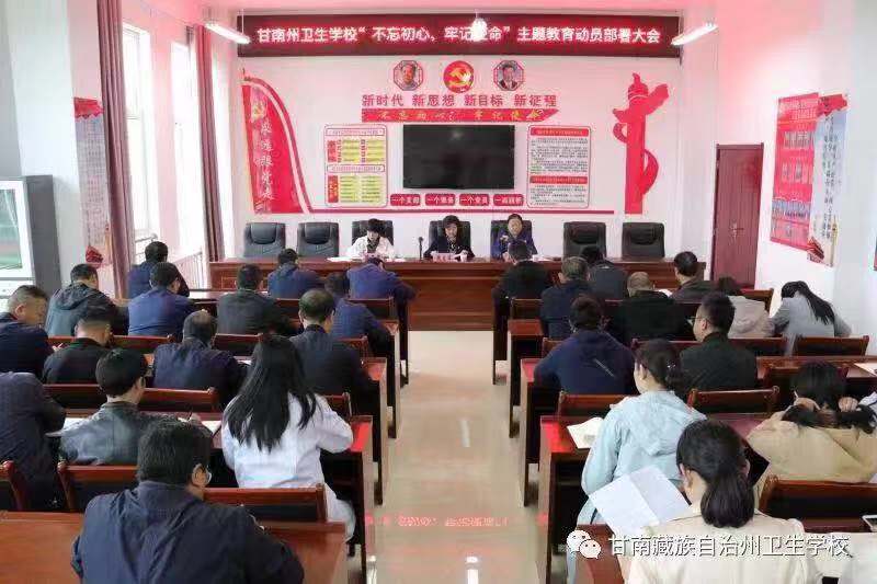 根据州委、州卫生健康委党委统一部署,9月16日下午,太阳集团tyc539党总支在公司综合服务楼党员活动室组织召开“不忘初心、牢记使命”主题教育动员部署大会。州卫生健康委第一巡回指导组组长、州卫生健康委党委委员、州计划生育协会副会长魏兰萍,甘南州卫生健康委党委办公室主任陈亚男及公司全体党员、预备党员、科级干部共计70余人参加会议。大会由太阳集团tyc539党总支书记、董事长赵苏静同志主持。