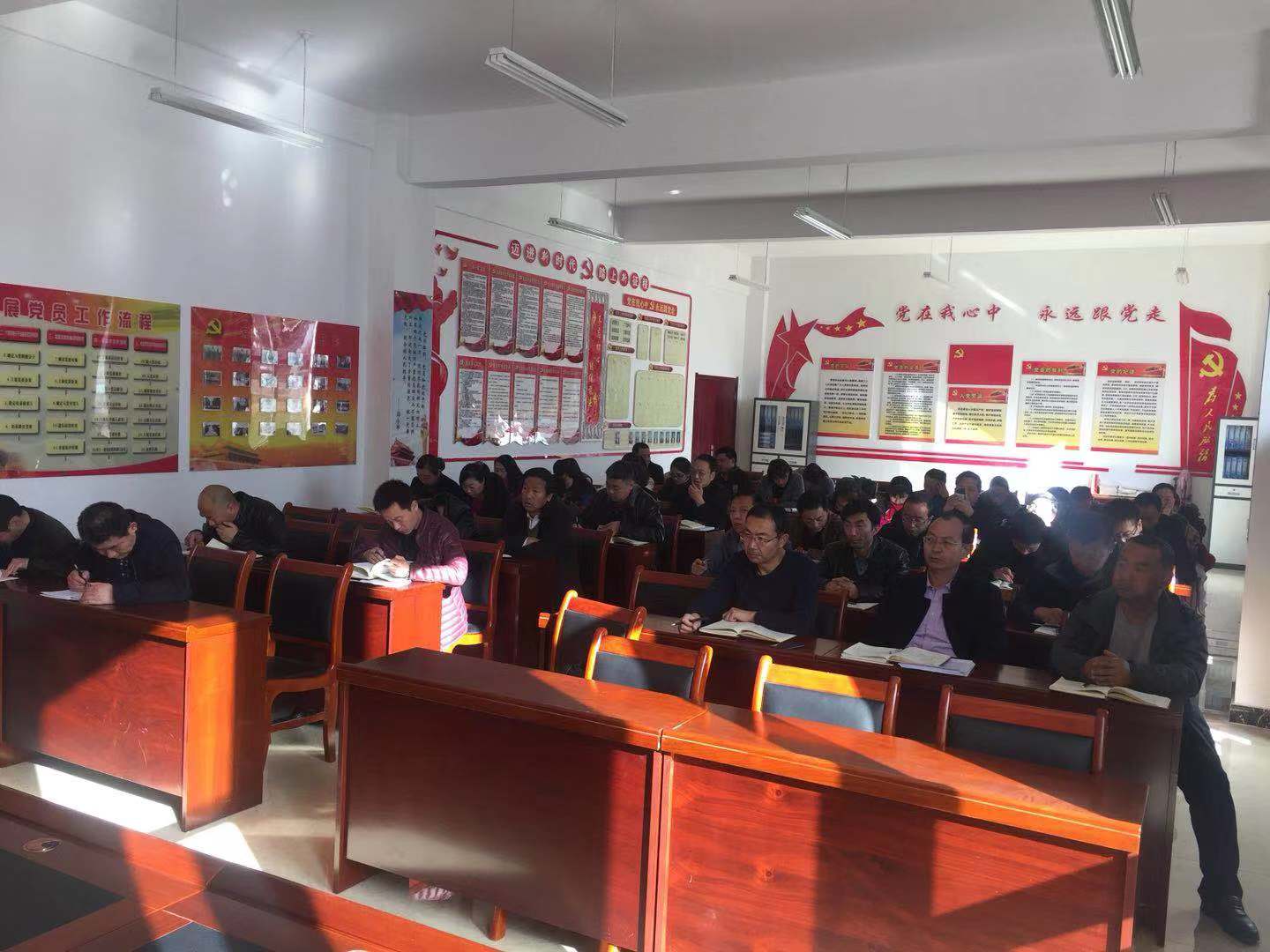 2019年11月21日下午,在公司综合服务楼三楼党员活动室,召开“不忘初心、牢记使命”主题教育专题学习会,认真学习了党的十九届四中全会精神。公司校领导、科级干部及全体党员共60余人参加了会议。会议由公司党总支书记赵苏静主持。