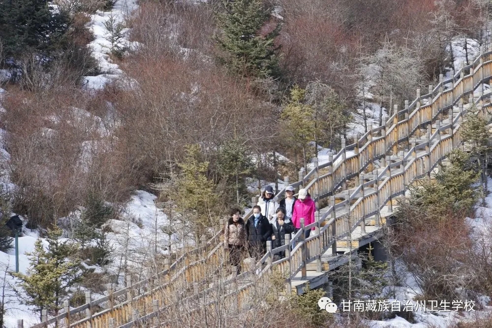 3月7日上午10点在校领导的带领下,全体女教职工参加了登山活动。大家在当周草原旅游景区门口开始登山,她们兴致勃勃,一路欢声笑语,呼吸着新鲜的空气,感受着大自然的美丽,在旭日的照耀下,向着目的地当周神山前进。不论是老职工还是年轻职工,个个争先恐后,互相鼓励,沿着神山蜿蜒曲折的栈道奋勇前进,经过一个小时的徒步跋涉,所有人员先后全部登上了山顶。