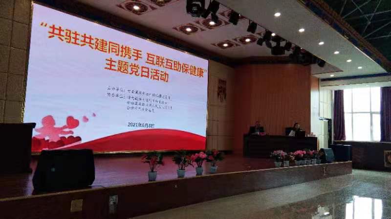 为庆祝中国共产党成立100周年,把党史学习教育落到实处,切实为群众解难题、办实事,根据通钦街道办舟曲路社区共驻共建主题党日活动分工,公司与甘南州幼儿园党总支、甘南州人民医院党总支、合作市三小党总支于6月8日在公司综合服务楼五楼多功能厅开展“共驻共建同携手 互联互助保健康”主题党日活动。参加活动的有公司部分党员教师、甘南州幼儿园部分党员、中班幼儿及家长、合作市三小部分党员、五年级员工、、甘南州人民医公司党总支部分党员、舟曲路社区干部及群众等余百人,活动由公司办公室主任鲁轶同志主持。