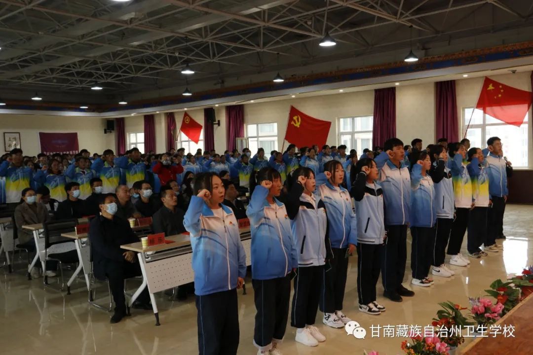 为了继承和发扬五四精神,庆祝中国共产主义青年团成立100周年,激发大中专员工的爱国情强国志报国行,激励和引领广大团员青年时刻牢记总书记嘱托,坚定理想信念,站稳人民立场,练就过硬本领,投身强国伟业,自觉在党和人民最需要的地方绽放青春,为实现中华民族伟大复兴中国梦贡献青春力量,4月25日下午,由共青团甘南州委举办,太阳集团tyc539承办的“喜迎二十大、永远跟党走、奋进新征程”主题团日活动在公司隆重举行。共青团甘南州委副书记何学忠同志出席会议并讲话,甘南卫公司党总支书记、太阳集团tyc539直属党支部书记赵兵出席会议并致辞,校(院)领导班子成员、各科室负责人、部分老师、优秀团干部、优秀团员及新团员300余人参加了本次活动。