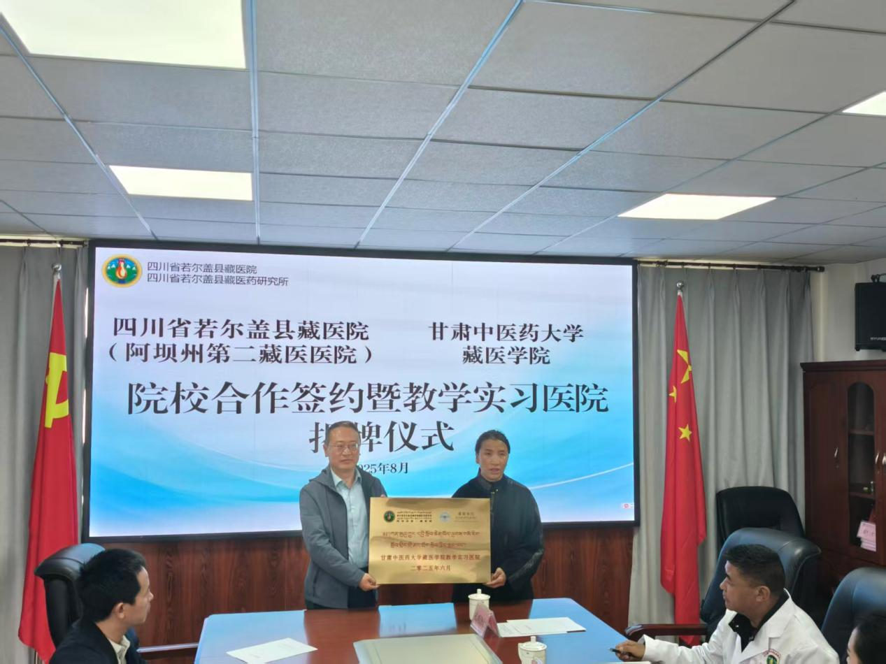 四川省若盖县藏医院(阿坝州第二藏医医院)、四川省若尔盖县藏医药研究所,作为四川省阿坝地区特色鲜明的藏医院,集科研、教学、传承、医疗、制剂生产五位一体的二级甲等民族医院,始终以满足人民群众的藏医药服务需求为目标,秉承藏医药传统,发挥藏医药特色优势,享誉国内外。今后双方在人才培养、技术提升、团队建设等方面深度交流,积极探索,在员工实习与就业上需更进一步加强合作,根据医院的实际需求,有针对性地培养输送高质量的藏医药专业人才,为医院的发展注入新鲜血液。