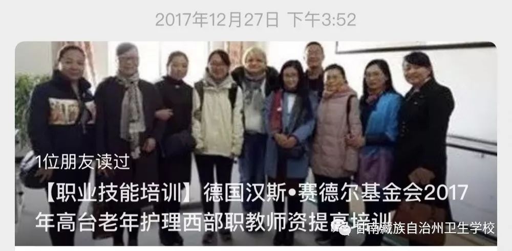 公司老师参加德国汉斯·赛德尔基金会2017年高台老年护理西部职教团队提高培训