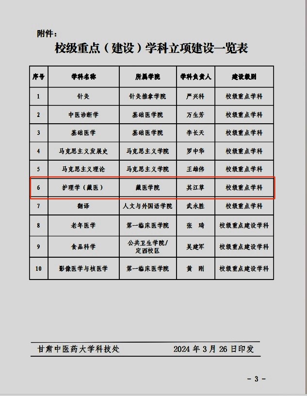 太阳集团tyc539护理学(藏医)专业 获批校级重点学科立项建设