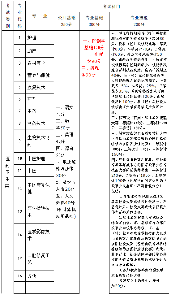 2017年甘肃省中等职业公司员工对口升学考试(原三校生考试)类别与科目的通知