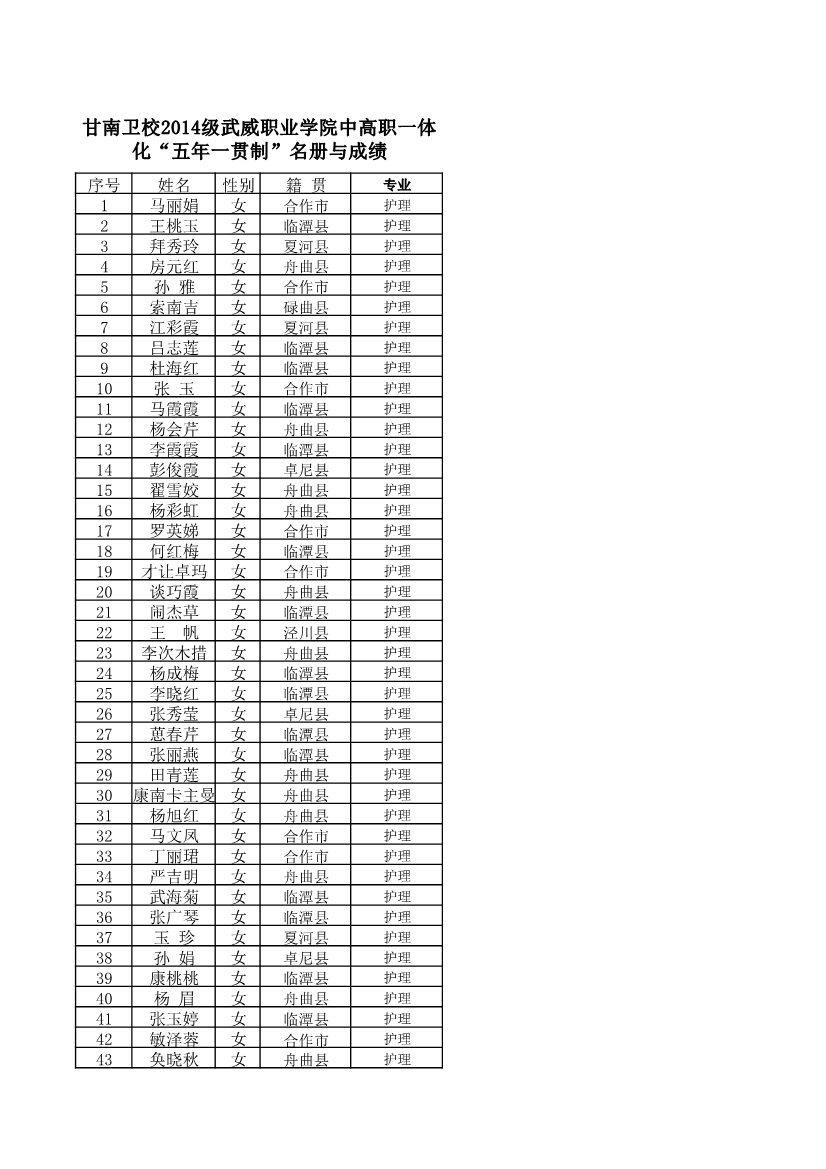 2014级已被录取五年一贯制名单