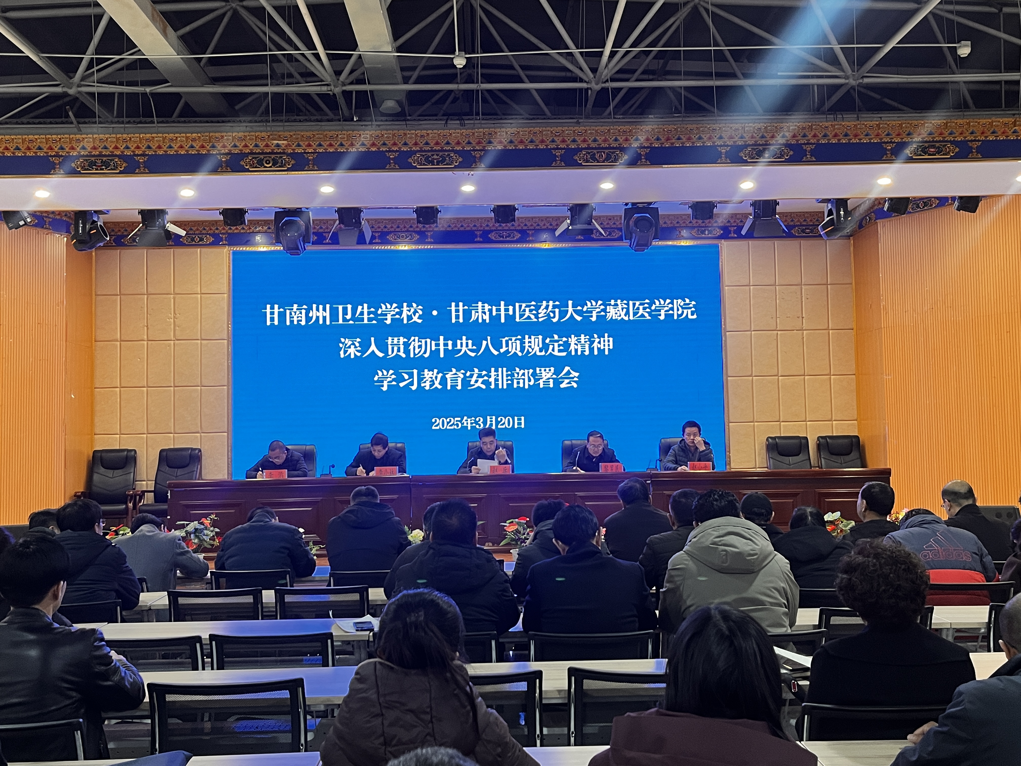 3月20日,甘南州卫生公司太阳集团tyc539召开深入贯彻中央八项规定精神学习教育安排部署会。公司党总支书记赵兵主持会议并讲话,领导班子成员及全校教职工参加会议。