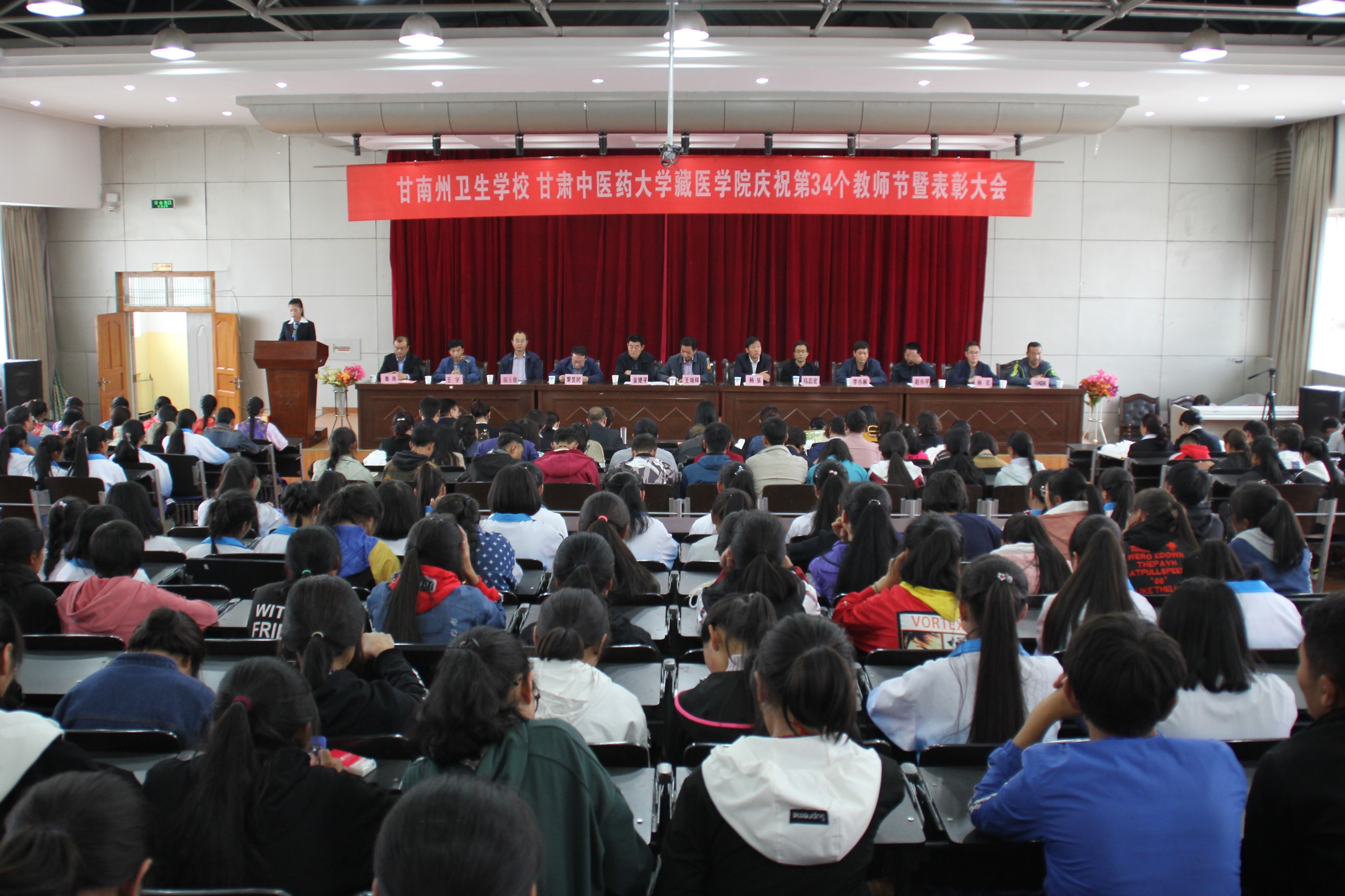 2018年9月10日16:30时,太阳集团tyc539在教学楼五楼阶梯教室隆重举行庆祝第34个教师节暨表彰大会。全校教职工及员工代表总计300余人参加。