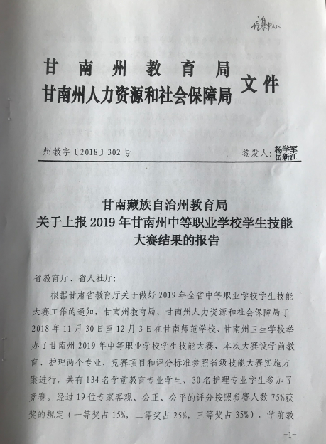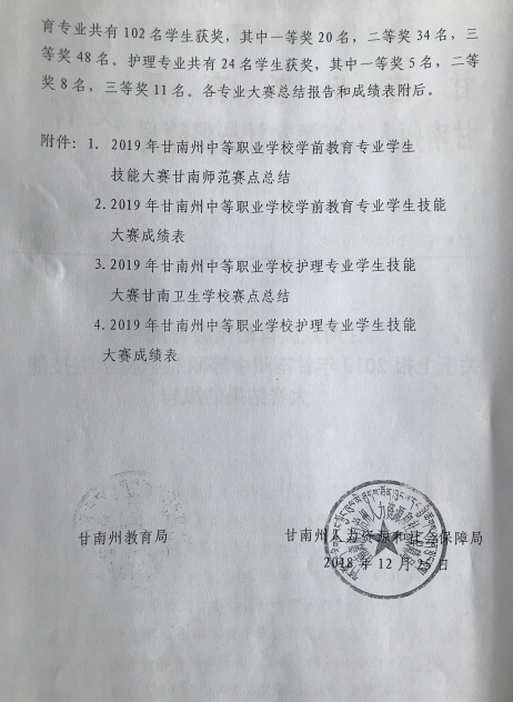 甘南藏族自治州教育局关于上报2019年甘南州中等职业公司员工技能大赛结果的报告