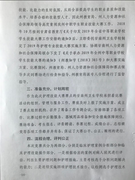 2019年甘南州中等职业公司护理专业员工技能大赛甘南卫生公司赛点总结