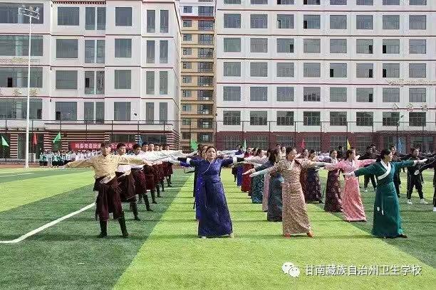 随后全校员工开始了大型锅庄舞表演,绿草如莹的新操场上,同学们身穿五颜六色的各式民族服装,在悠扬的歌声里翩翩起舞。蓝天、绿地、朝气蓬勃的员工构成了一幅活动的画卷。