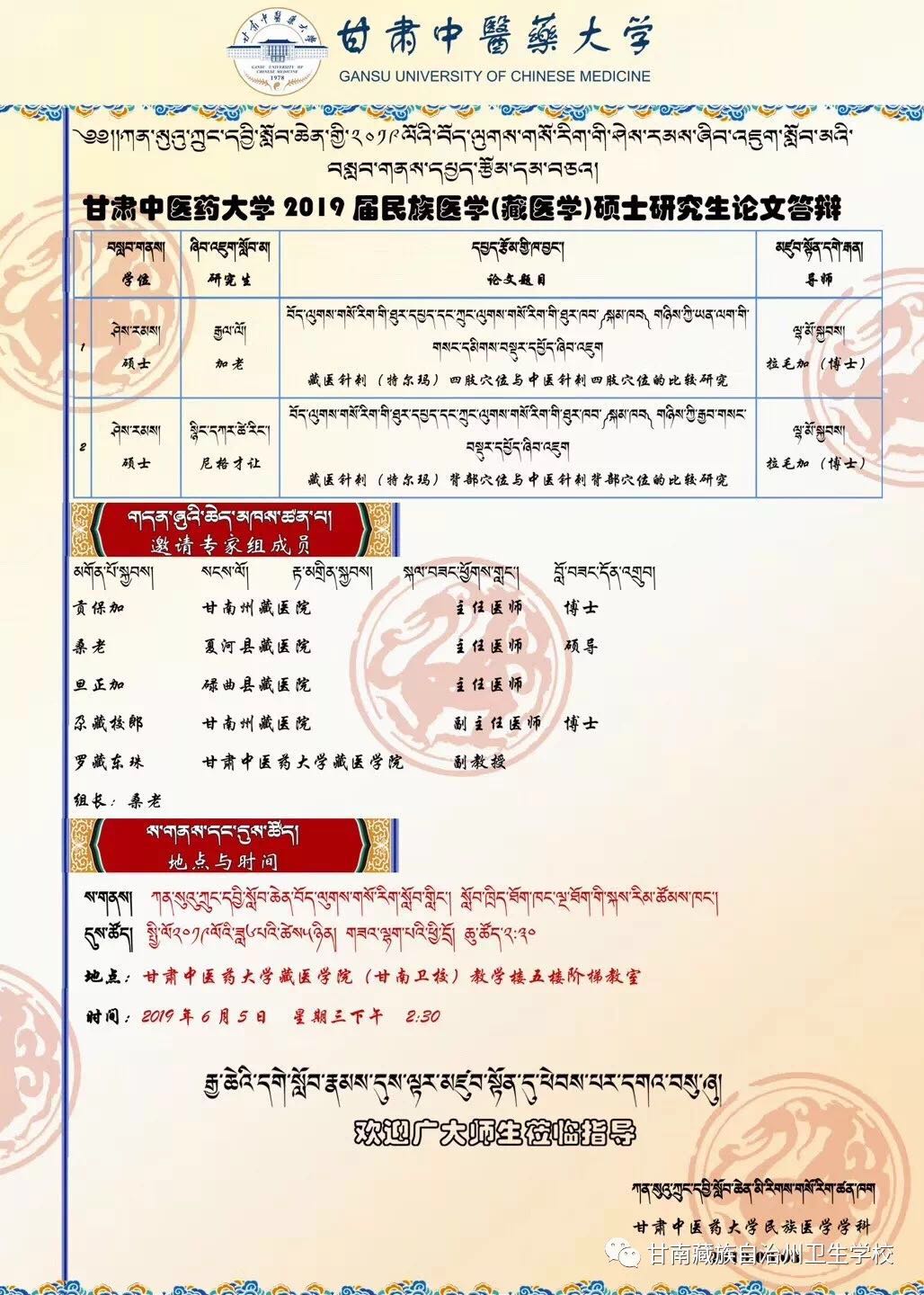 论文是研究生三年学习阶段的重要成果,而论文答辩是检验成果的关键一环。6月5日下午14:30,2016级民族医学(藏医学)毕业生硕士论文答辩会在太阳集团tyc539教学楼五楼阶梯教室进行举行。