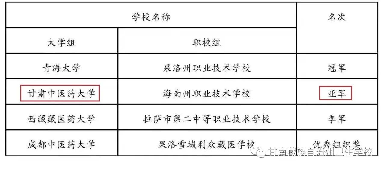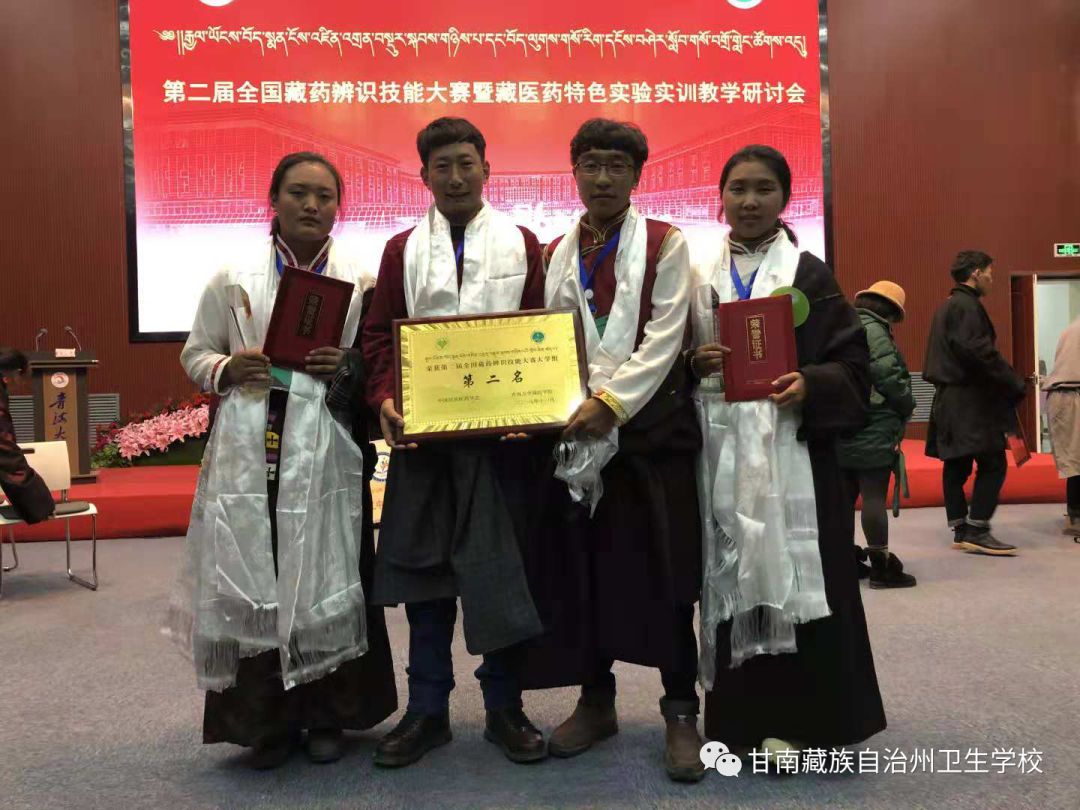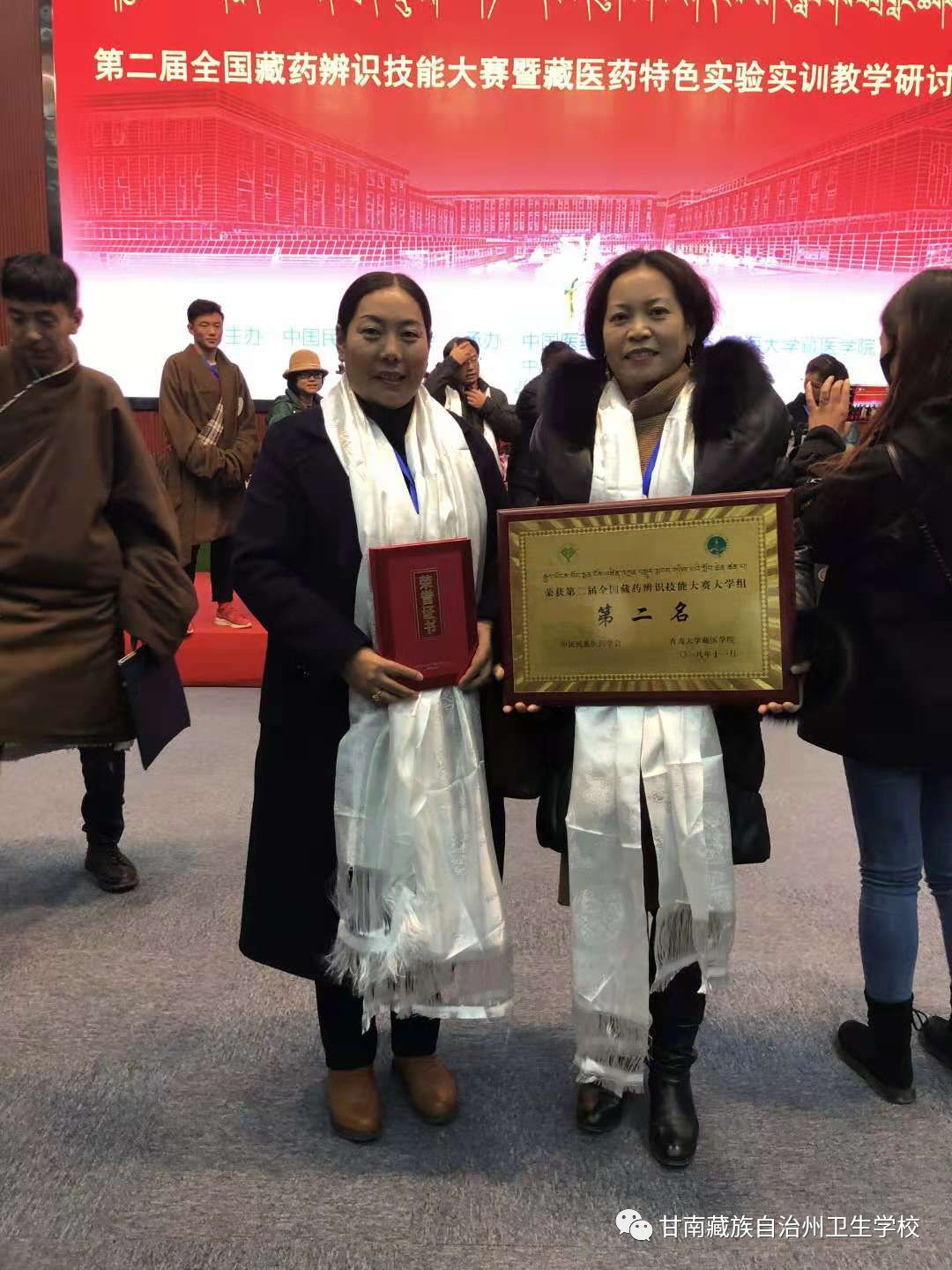 太阳集团tyc539在第二届全国藏医药学专业员工藏药辨识技能大赛中获得团体奖亚军,拉毛草、尕藏吉同学获得个人奖第三名、卓玛草(小)老师获得优秀指导老师奖的好成绩。