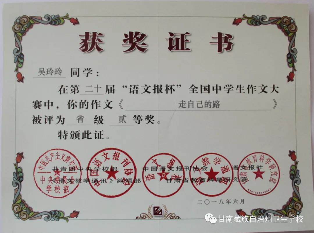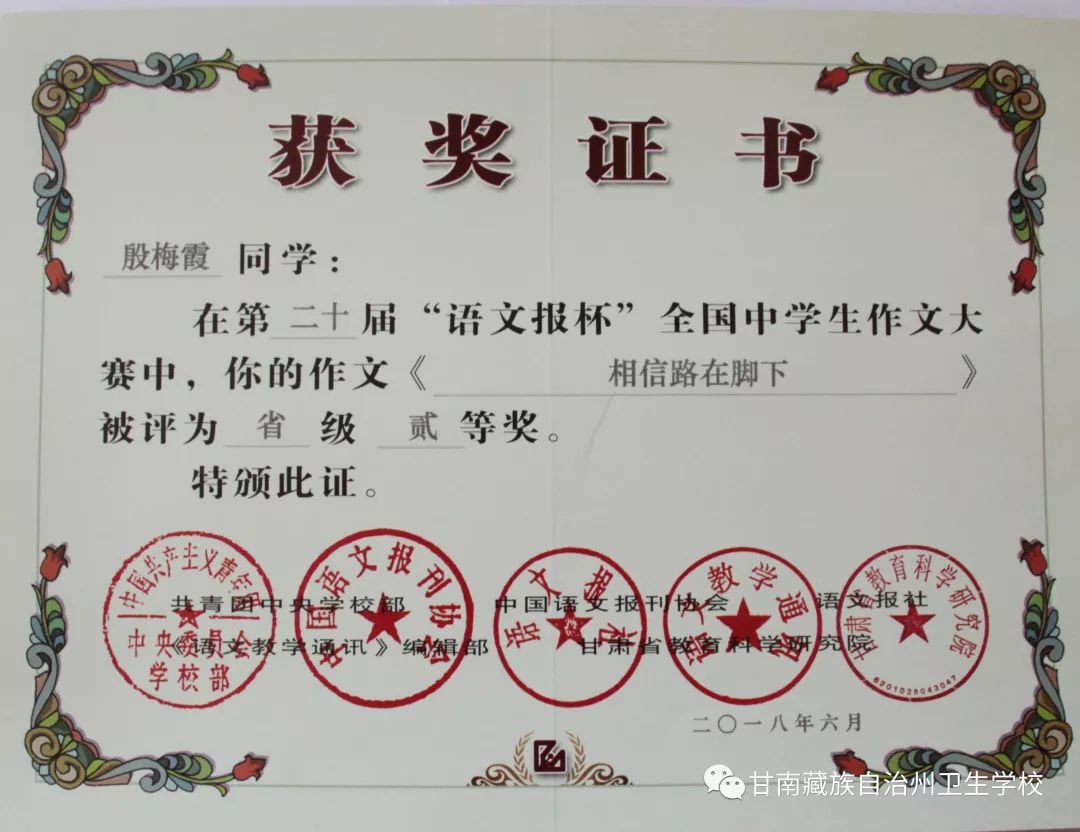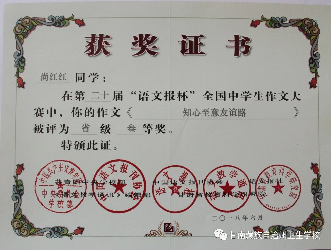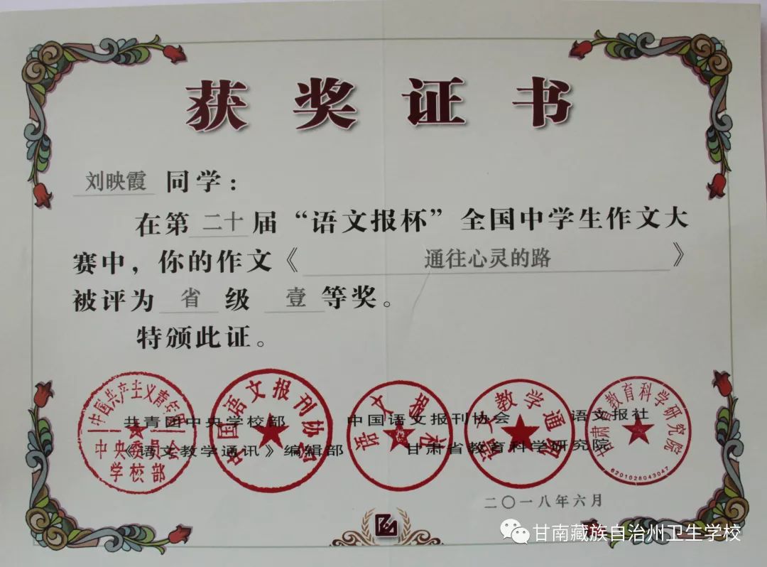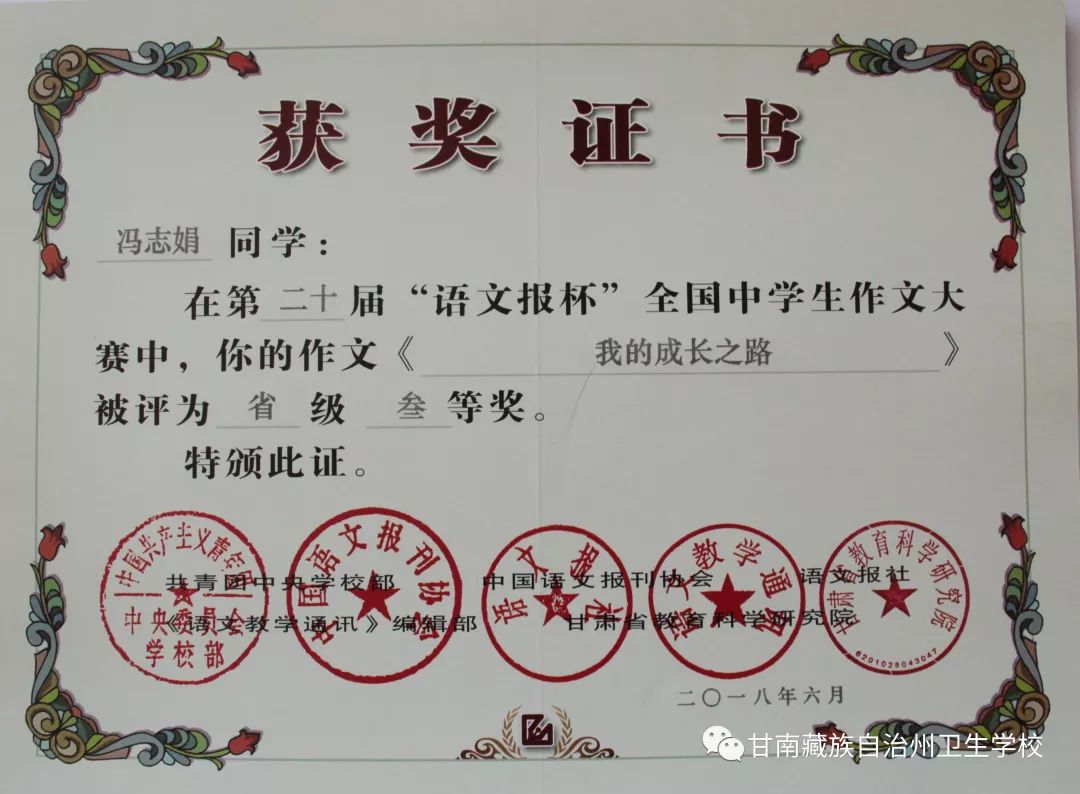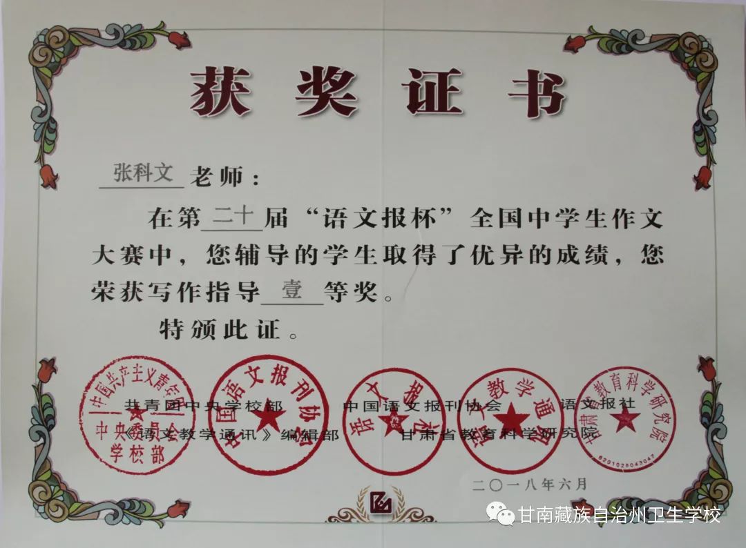 甘南卫校员工在第二十届语文报杯全国中员工作文大赛中喜获佳绩