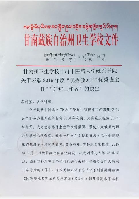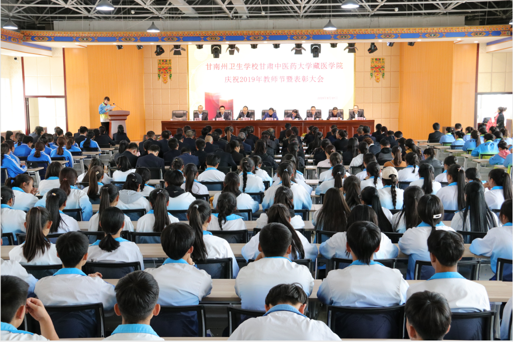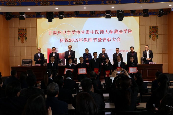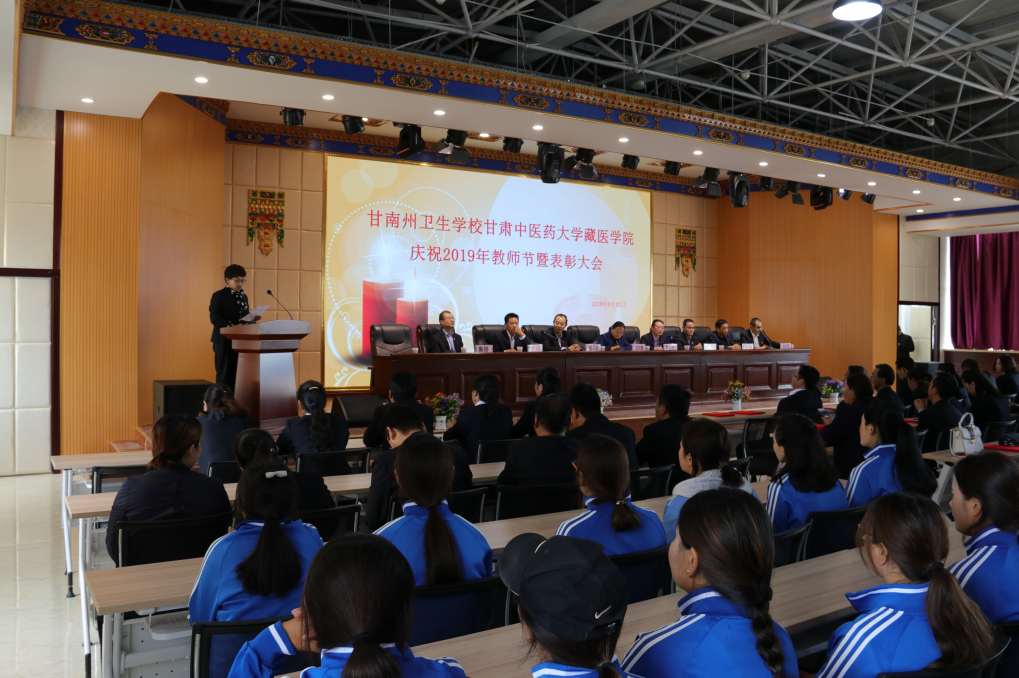 庆祝表彰大会由公司党总支副书记、副董事长黎昱民同志主持。会上对2019年度在公司各岗位上涌现出的马志宏等26名先进个人和藏药学科组等2个先进集进行了表彰。教师代表杨丽萍、员工代表办玛草分别发表了热情洋溢的节日感言,让全体与会师生感受到了一线教师献身卫生职业教育的崇高情怀和优秀品质,也分享了来自莘莘学子对老师的真诚的节日祝福。