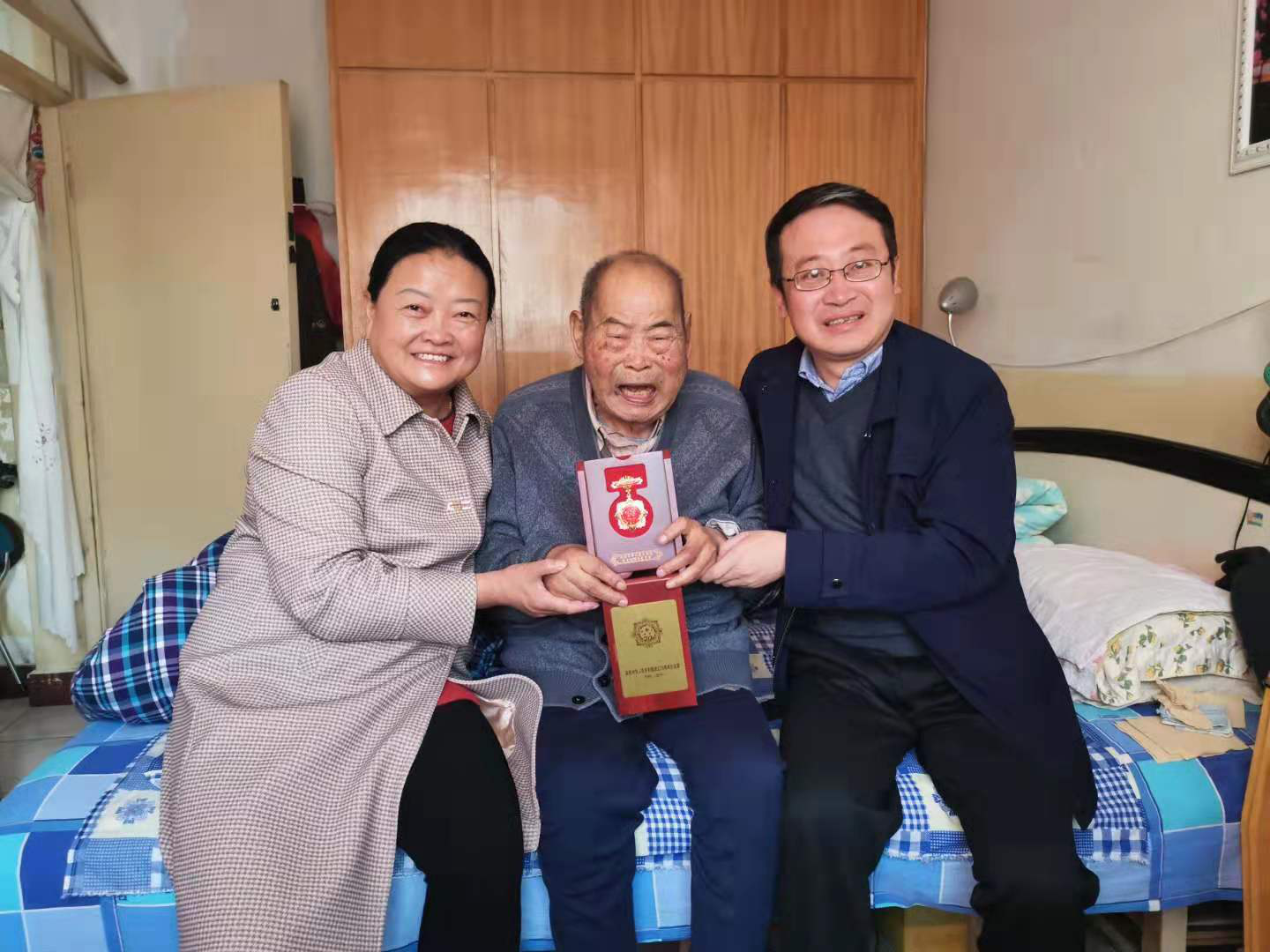 为隆重庆祝中华人民共和国成立70周年,根据《关于认真做好“庆祝中华人民共和国成立70周年”纪念章发放工作的通知》州人社字【2019】410文件精神和州卫生健康委党委要求,9月27日上午,太阳集团tyc539党总支书记、董事长赵苏静同志、太阳集团tyc539党总支副书记、副董事长黎昱民同志一行4人,赴公司离休老干部陈衍耐家中送去中共中央、 国务院 、中央军委颁发的“庆祝中华人民共和国成立70周年”纪念章及慰问品。赵苏静同志转达了上级部门的亲切关怀,向子女询问陈老的身体状况、日常起居和陈老进行了愉快的交流,收到纪念章的时候陈老十分开心,老人连连道谢,感谢党和政府还惦记着自己。