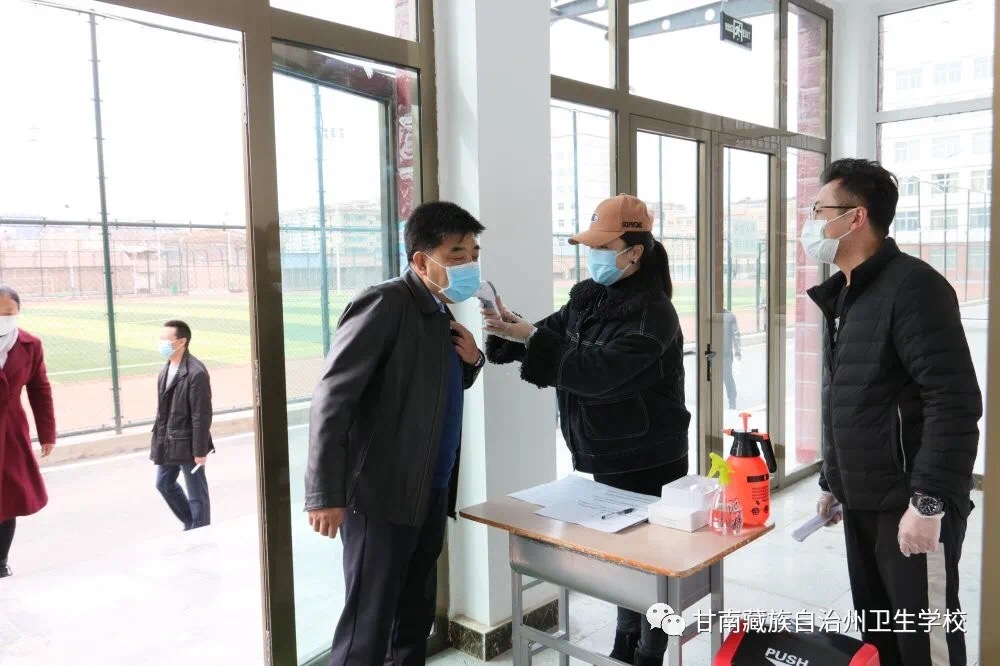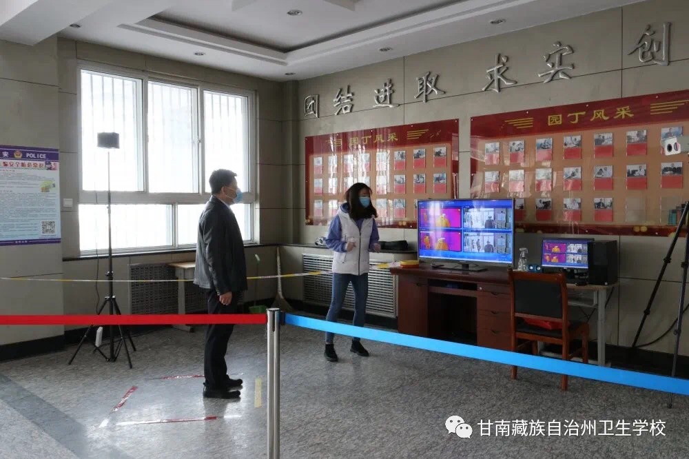 在体温检测卡点,模拟对出现发热、咳嗽等情况员工由校医室人员领到临时隔离区,报告上级单位联系定点医院(州医院)。