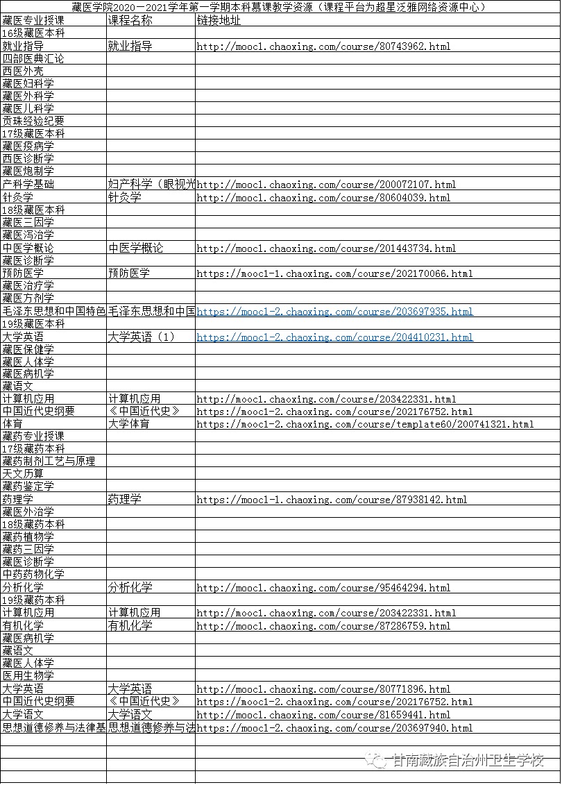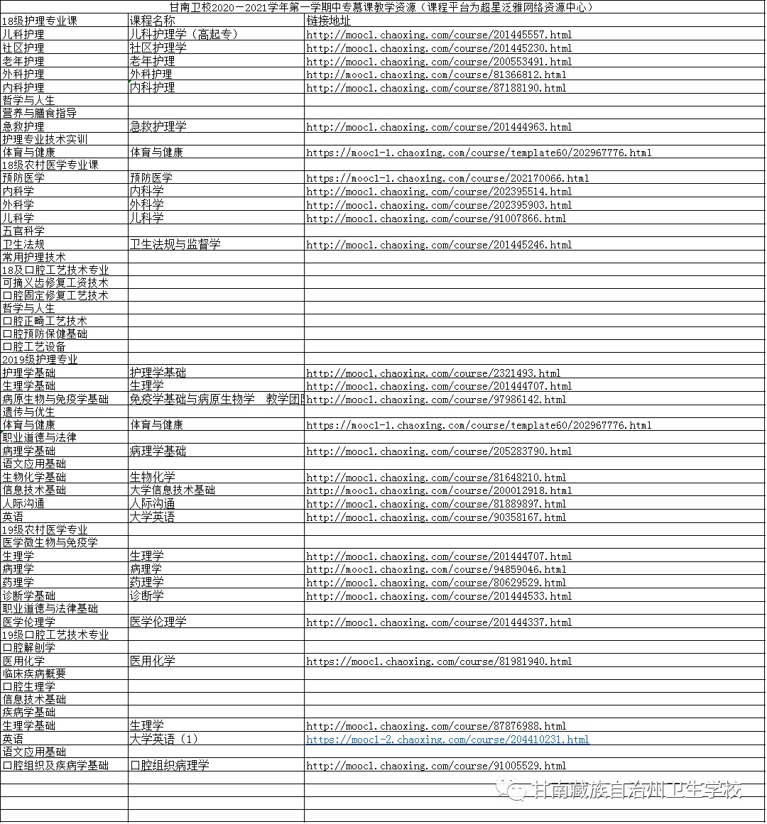 1、甘南卫校2020—2021学年第一学期中专慕课教学资源