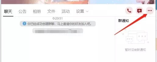 进入群之后点击右上角的(红色箭头所指)按钮,并进入:
