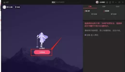 点击进入大厅界面,依次点击“立即排麦”-“开始排麦”就进入直播界面。
