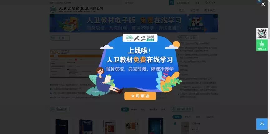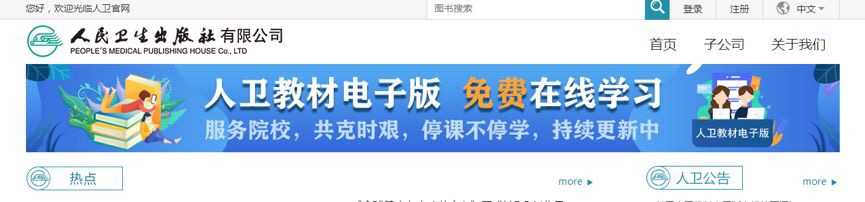 方式一:登录人民卫生出版社官网(www.pmph.com),点击首页弹出页或首页顶部图片,进入人卫教材电子版在线学习平台。