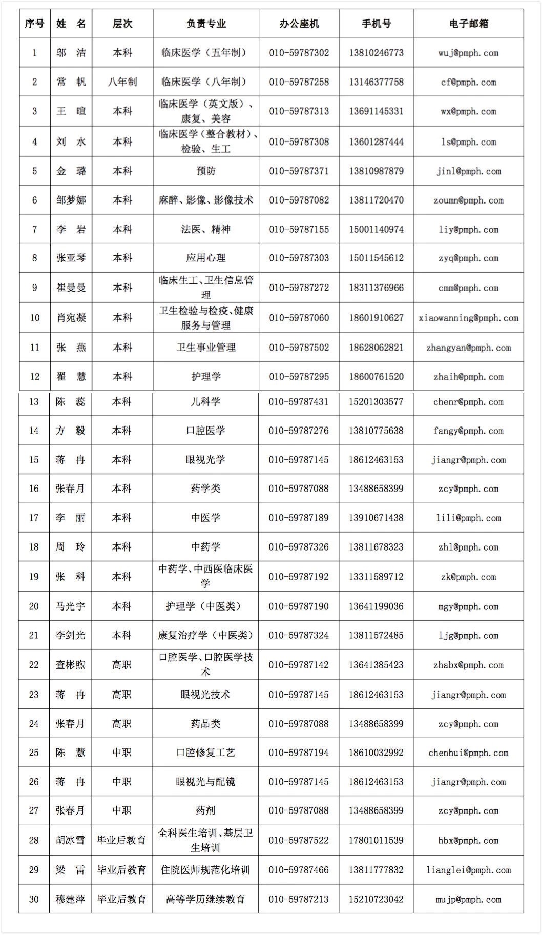 在线学习阶段,有任何问题请与人卫社各专业负责人联系: