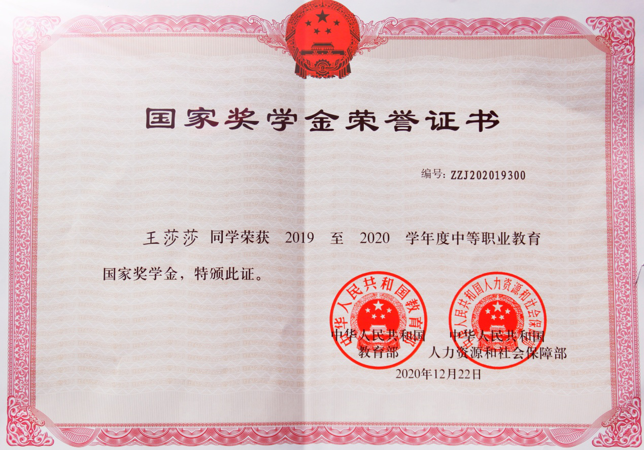 根据甘南州教育局甘教助函【2020】56号文件精神,充分发挥资助工作的育人功能,公司在全校范围内开展2019-2020学年中职国家奖学金评选活动,经州、省员工资助部门的严格选拔、层层评审、推荐等环节,最终公司王莎莎同学获得2019-2020学年中等职业教育国家奖学金。