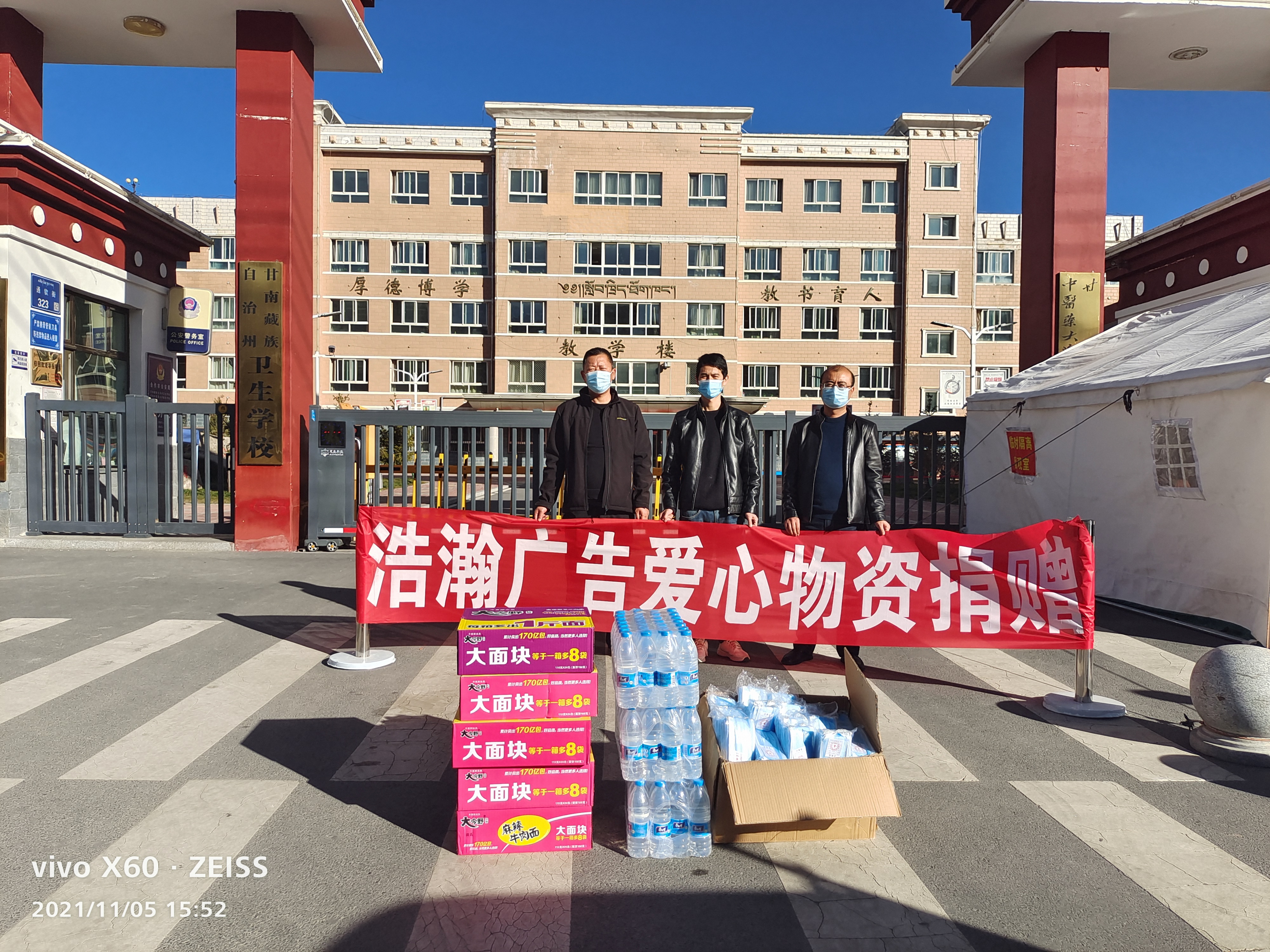 2021年11月5日,甘南州浩瀚广告装饰有限公司向公司捐赠价值2100元的疫情防控物资。