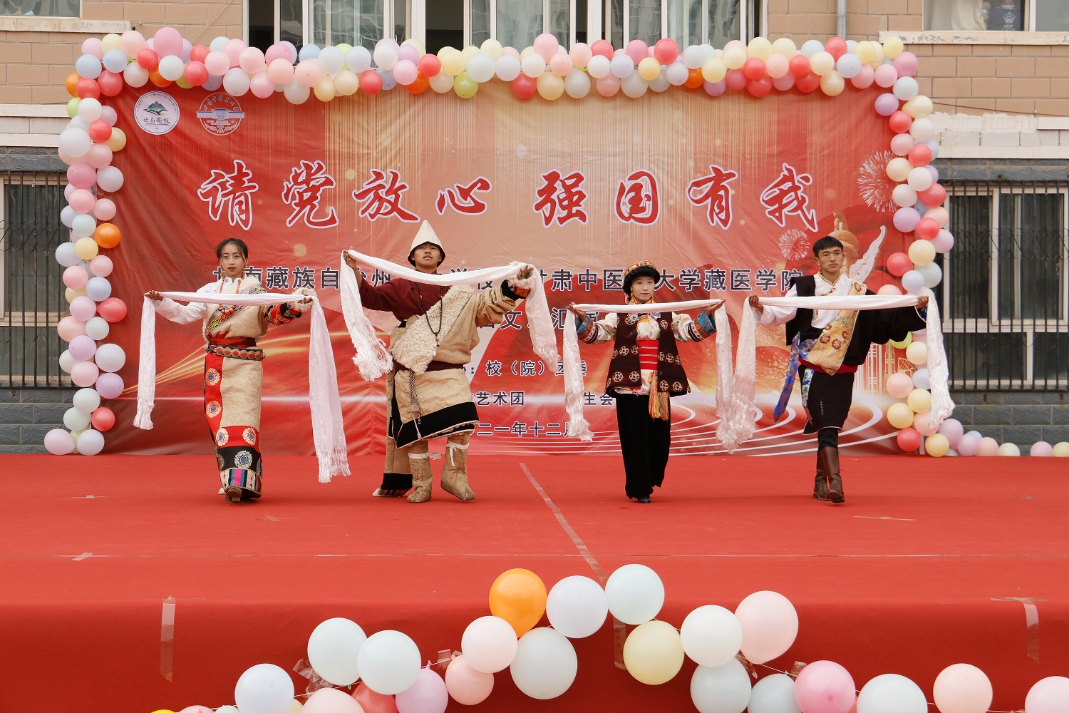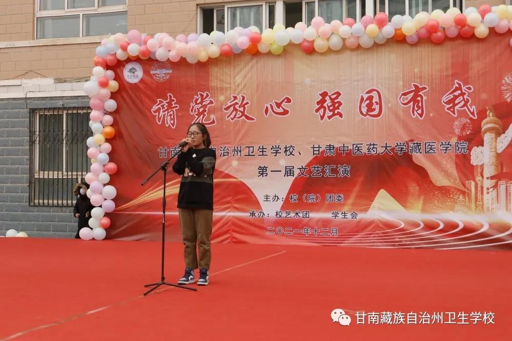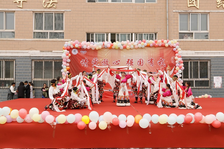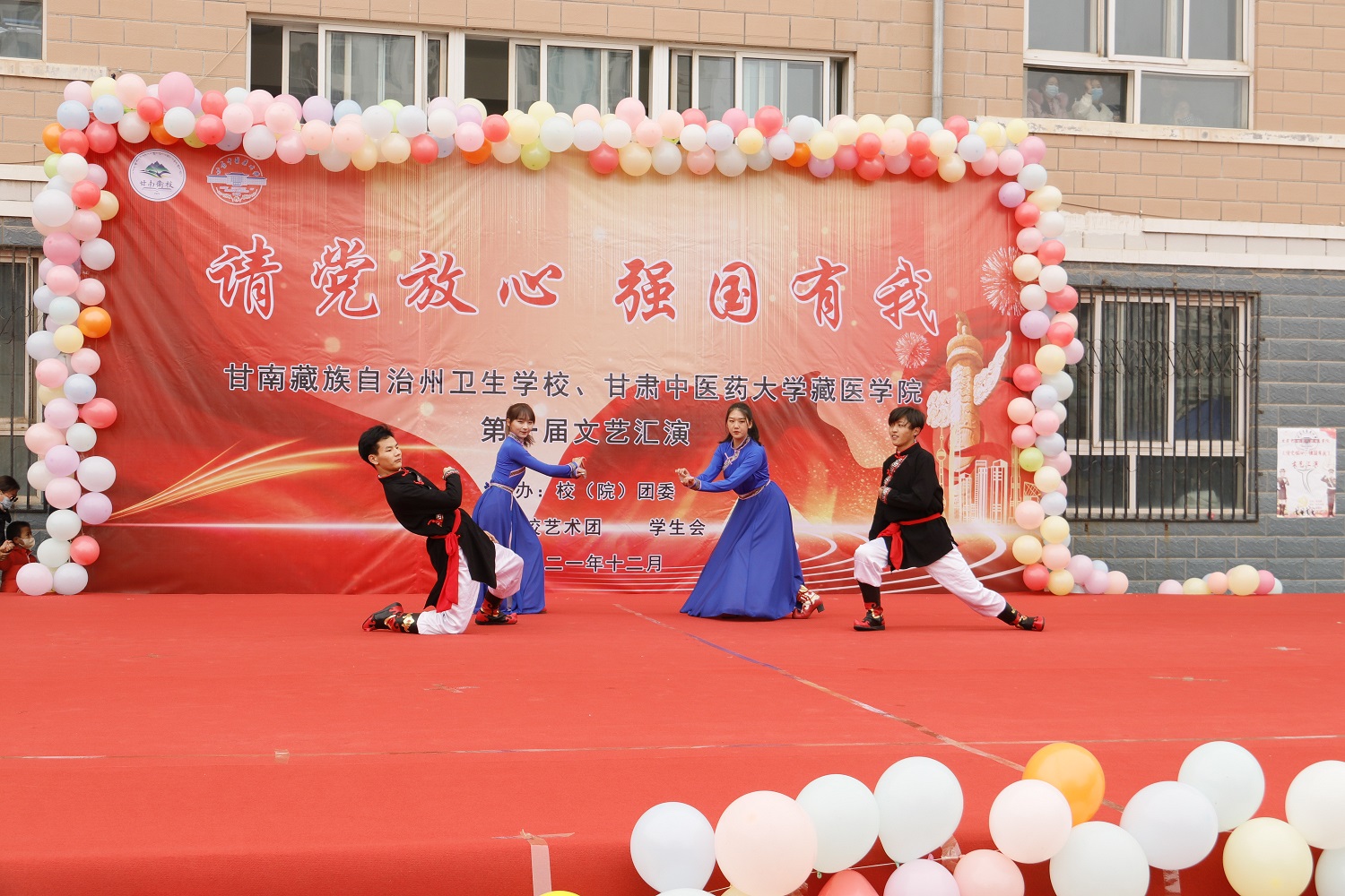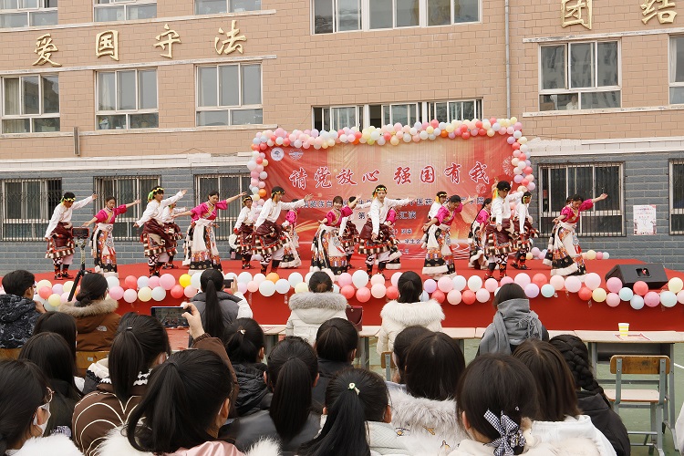 下午14:30时,演出在热情洋溢的藏族舞《春满灵芝之唱支山歌给党听》中拉开序幕,朵仁欠才让、朱玛乃草等四名同学饱含深情、铿锵有力的诗朗诵《请党放心、强国有我》,将公司两千多名莘莘学子的爱国情怀向党倾诉,将整场演出推向高潮。校艺术团和各班级精心准备的节目精彩纷呈,演出高潮迭起,悦耳的音乐和欢快的节奏相互辉映,创设了轻松、奔放、热烈的艺术氛围。男女合唱《吉祥祝福》、男声独唱《幻听》、蒙古舞《草原儿女心向党》、女生独唱《Someone You Loved》、相声《找地名》赢得了观众热烈的掌声,让大家意犹未尽;劲舞、民族服装秀、新疆舞《永恒之爱》等显示了同学们深厚的表演功底,各种舞蹈、歌曲让员工们眼花缭乱,歌声、笑声、掌声、欢呼声交融在一起。尽管天公不作美,积雪尚未消融,但是欢乐的气氛洋溢在校园的每一个角落,笼罩着每一位师生,近两个小时的欢声笑语给全校师生留下了美好的记忆。