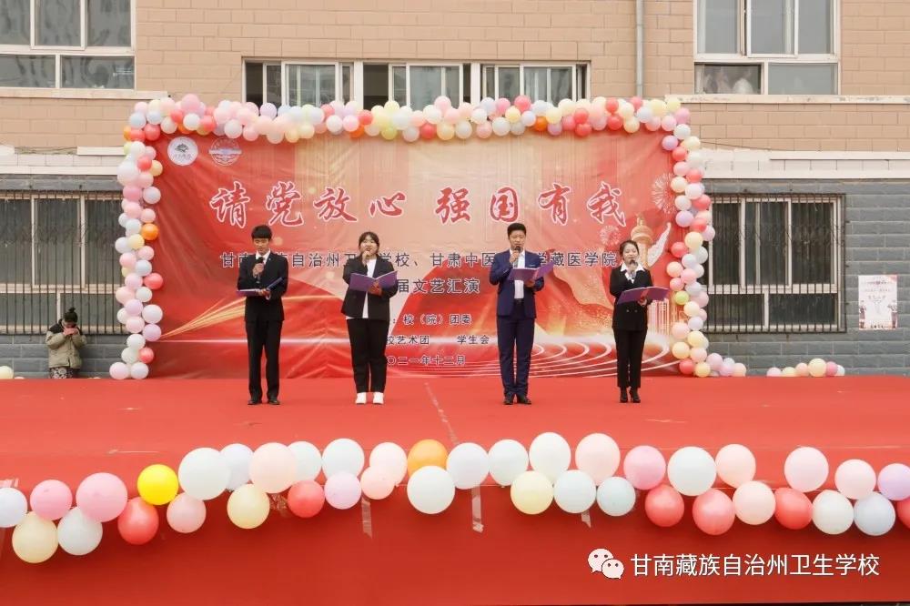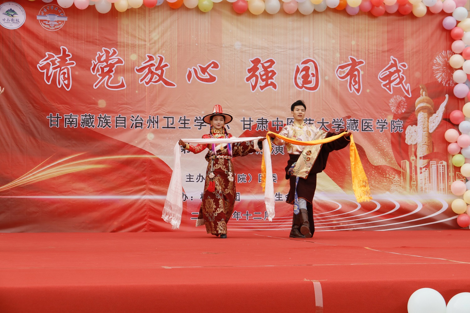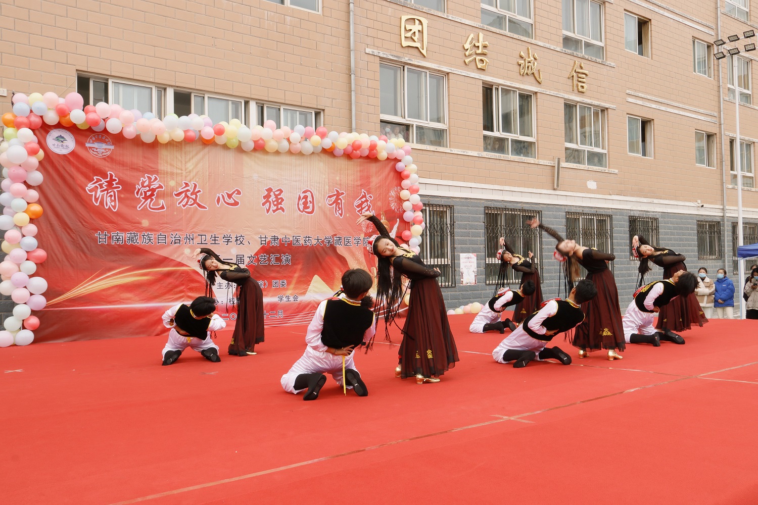 下午14:30时,演出在热情洋溢的藏族舞《春满灵芝之唱支山歌给党听》中拉开序幕,朵仁欠才让、朱玛乃草等四名同学饱含深情、铿锵有力的诗朗诵《请党放心、强国有我》,将公司两千多名莘莘学子的爱国情怀向党倾诉,将整场演出推向高潮。校艺术团和各班级精心准备的节目精彩纷呈,演出高潮迭起,悦耳的音乐和欢快的节奏相互辉映,创设了轻松、奔放、热烈的艺术氛围。男女合唱《吉祥祝福》、男声独唱《幻听》、蒙古舞《草原儿女心向党》、女生独唱《Someone You Loved》、相声《找地名》赢得了观众热烈的掌声,让大家意犹未尽;劲舞、民族服装秀、新疆舞《永恒之爱》等显示了同学们深厚的表演功底,各种舞蹈、歌曲让员工们眼花缭乱,歌声、笑声、掌声、欢呼声交融在一起。尽管天公不作美,积雪尚未消融,但是欢乐的气氛洋溢在校园的每一个角落,笼罩着每一位师生,近两个小时的欢声笑语给全校师生留下了美好的记忆。