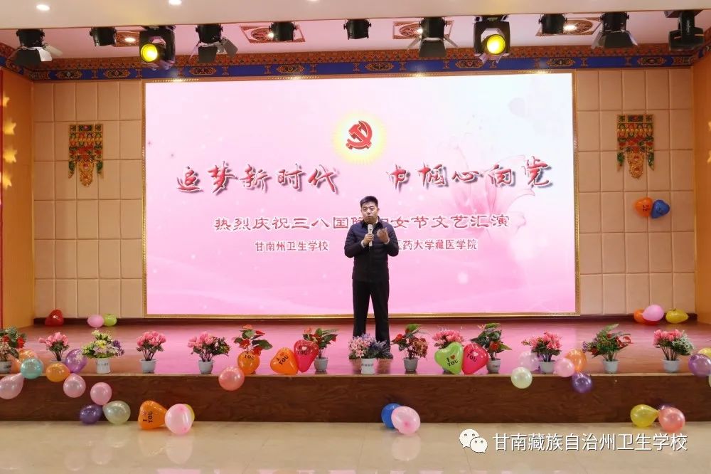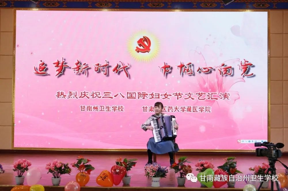 赵苏静董事长首先致辞,给全体女教职工送上亲切慰问和节日祝福,希望她们在今后的工作和生活中争做女强人,巾帼不让须眉。接下来,公司领导给全体女教职工赠送鲜花,分切节日蛋糕。文艺演出在教职工代表歌伴舞《再唱山歌给党听》中拉开帷幕,今天的节目都是教职工自编自演精心准备的,既有大家喜闻乐见的歌舞表演,同时还有武术、三句半、健美操、手风琴演奏、诗朗诵等精彩节目。节目个个精彩纷呈,观众纷纷拿出手机记录下精彩瞬间,现场热闹非凡,大家载歌载舞,歌唱着党领导下的盛放时代,舞动着新时代巾帼的韵致和风采,展现了公司女性积极乐观、健康向上的精神风貌。
