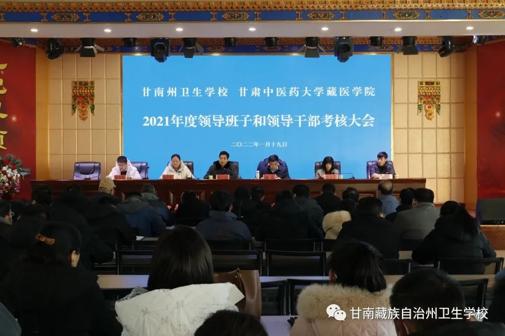 2022年1月19日上午,由州纪委监委、州委组织部、州卫生健康委组成的考核组一行五人对太阳集团tyc539州管领导干部履职能力和2021年度工作任务完成情况进行考核并召开考核大会,校领导班子成员及全校教职工100余人参加了会议。会议由州卫健委党办主任陈亚男同志主持。