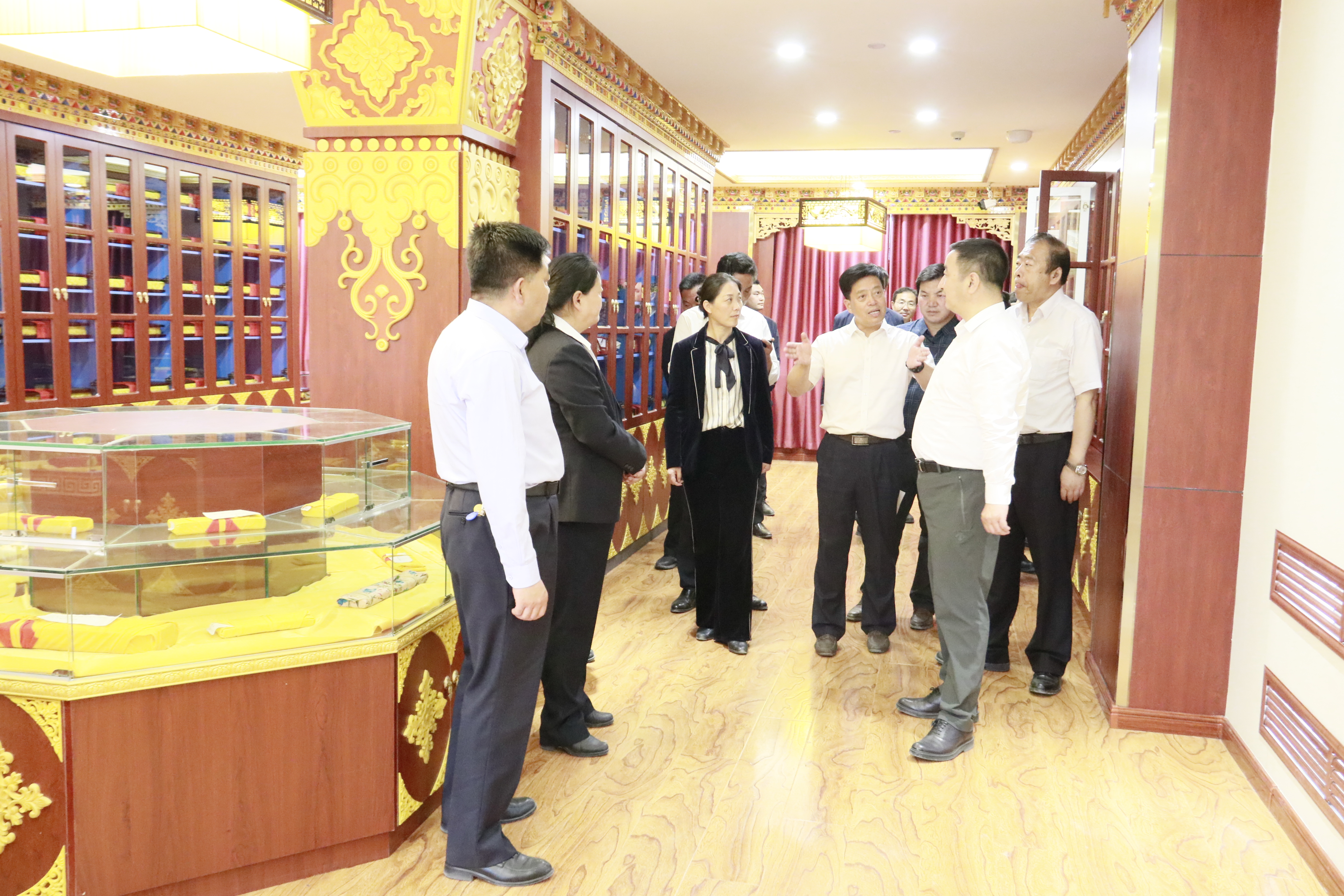杨武、赵继荣一行深入新校区建设项目选址现场,听取了合作市委、州卫健委主要负责人关于太阳集团tyc539迁址新建项目进展情况的汇报,详细了解掌握新校区建设项目推进情况,并对新校区建设提出指导性和建设性意见。随后,实地考察和调研了合作市中藏医院建设项目,对建设标准和周围交通等情况提出了具有针对性的意见建议。最后来到了太阳集团tyc539图书信息楼,重点对新增加的校史展览馆、藏医典藏馆进行检查指导,详细了解了公司各项工作开展情况和藏医药教育事业发展历程,结合新校区建设,为藏医药发展提出了前瞻性意见。