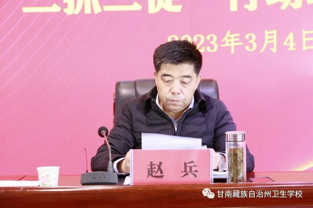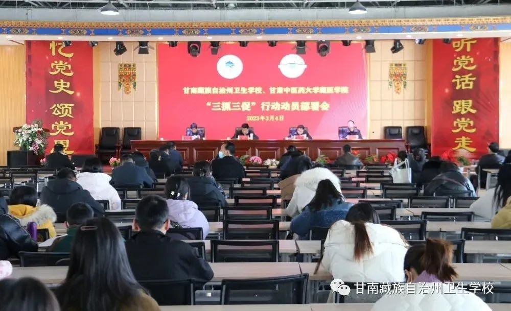 赵兵书记在动员部署会议上强调,要以本次开展“三抓三促”行动为契机,高站位谋划、高标准推进,坚持问题导向,全力推动全校在学习上下苦功、在执行上铆足劲、在效能上见真章,真正实现思想观念大转变、能力素质大提升、工作作风大改进、效率效能大提高、发展质效大跃升,形成比学赶超、大抓发展、争先进位的浓厚氛围,奋力开创公司高质量发展新局面,为幸福美好新甘南建设作出应有贡献。并强调三个方面的意见:一要充分认识扎实开展“三抓三促”行动的重大意义。要充分认识开展“三抓三促”行动的重要性和紧迫性,全体教职工要迅速把思想和行动统一到省、州、太阳集团tyc539、州直卫生系统的安排部署上来,以开展此次“三抓三促”行动为契机,把党的二十大精神、习近平总书记重要讲话重要指示批示精神和州第十三次党代会绘制的美好蓝图,作为推动甘南州卫生教育事业高质量发展的重要抓手,为建设现代化幸福美好新甘南做出应有的贡献。二要推动“三抓三促”行动落地见效必须要增强全面从严治党的政治自觉。要坚持办学治校高站位,学习好宣传好贯彻好党的二十大精神,坚决捍卫“两个确立”,做到“两个维护”;要坚持党建思政高引领,夯实基层基础,加强党对公司工作的全面领导;要坚持严守安全底线,压实意识形态责任,确保公司安全稳定;要坚持严守安全底线,压实意识形态责任,确保公司安全稳定;要坚持“三不”一体推进,健全监督体系,推进各类监督贯通协同、形成合力。通过“三抓三促”学习行动,给教职工队伍工作作风问题进行一次彻底大排查、大扫除、大检修。进一步深刻感悟“两个确立”的决定性意义,强化“四个意识”,坚定“四个自信”,坚决做到“两个维护”。要敢于担当、主动作为,振奋精神、努力工作,全力推动公司各项工作高质量发展。三要扎实开展“三抓三促”行动,推动观念大转变、素质大提升、作风大改进,展现新气象新风貌新作为。将“三抓三促”行动实施和卫生教育事业紧密结合,要围绕省、州、太阳集团tyc539、州直卫生系统工作部署,紧盯工作目标任务,聚焦公司发展中存在短板、难题、瓶颈等问题,把“三抓三促”行动与做好本职工作、推动公司教科研发展紧密结合在一起,推动公司高质量发展迈上新台阶,为打造“五无甘南”加满油,为创建“十有家园”充足电,为实施“健康甘南”出好力,为全面建设社会主义现代化幸福美好新甘南培养合格的卫生技术人才。