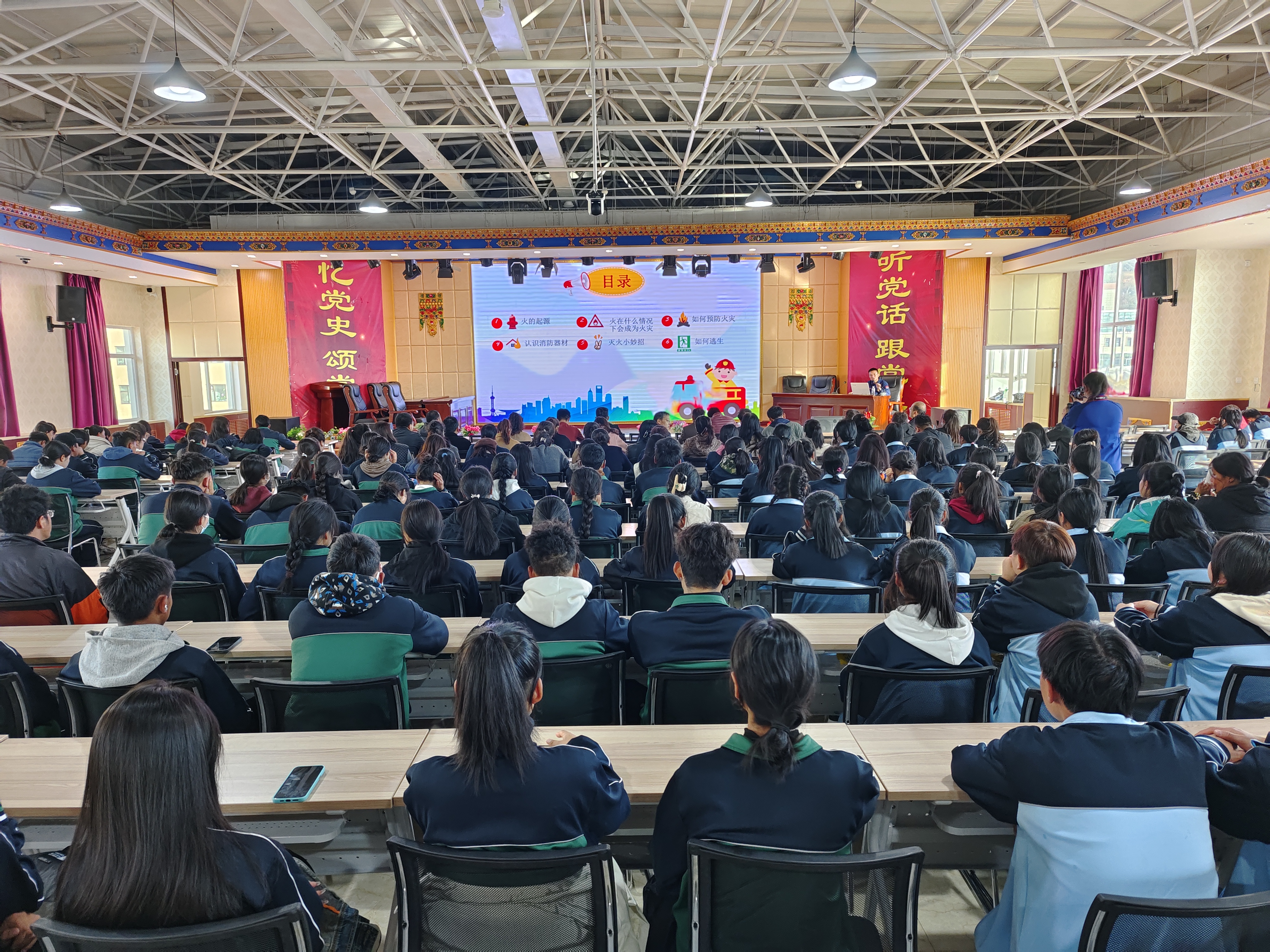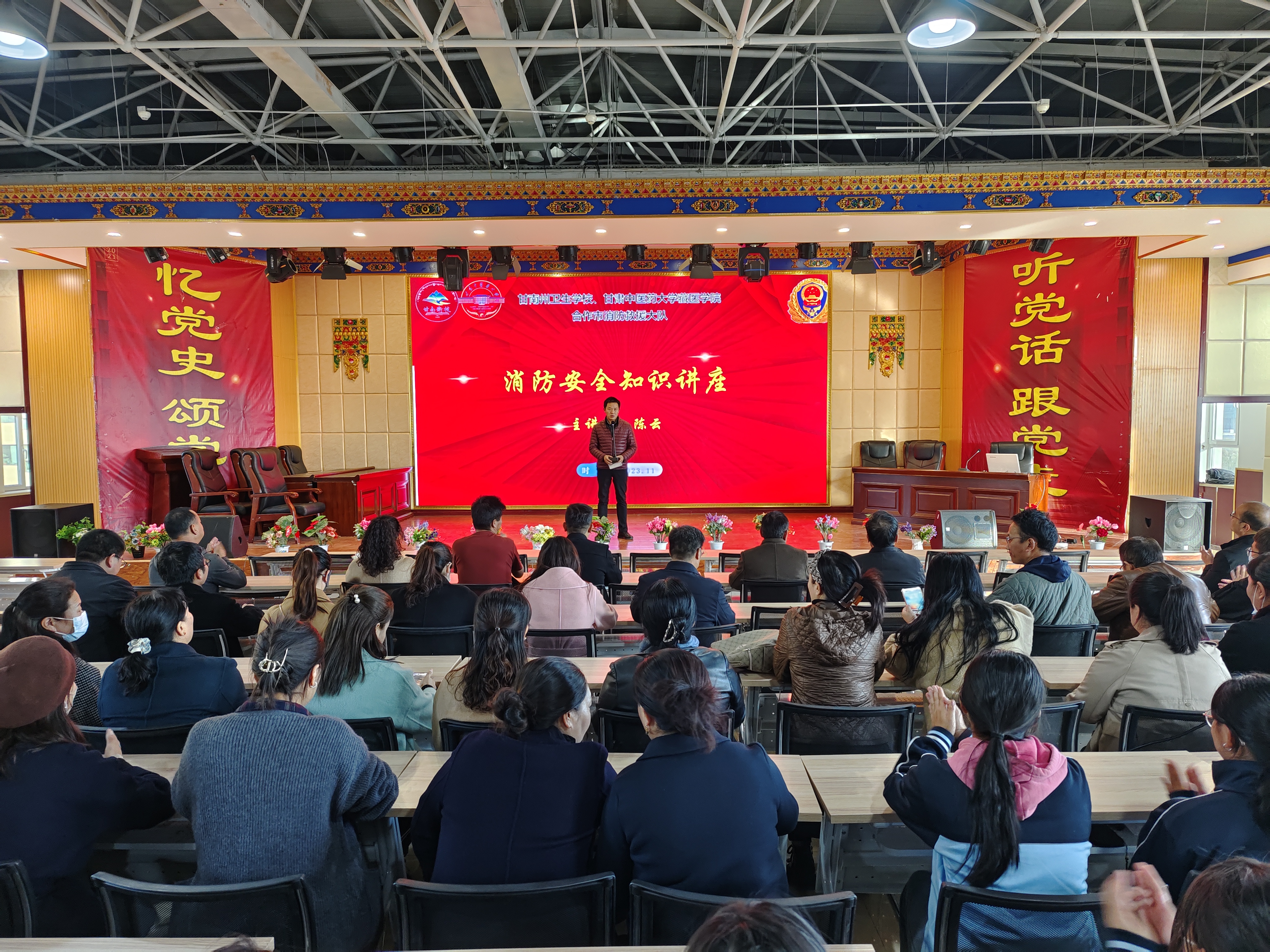 7日下午16时公司邀请合作市消防救援大队指导员陈云同志,在公司综合服务楼多功能厅为公司全体师生讲解了地震来临及发生火灾时逃生自救技能,通过PPT形式讲解了校园火灾发生的危害及应急处理技能。