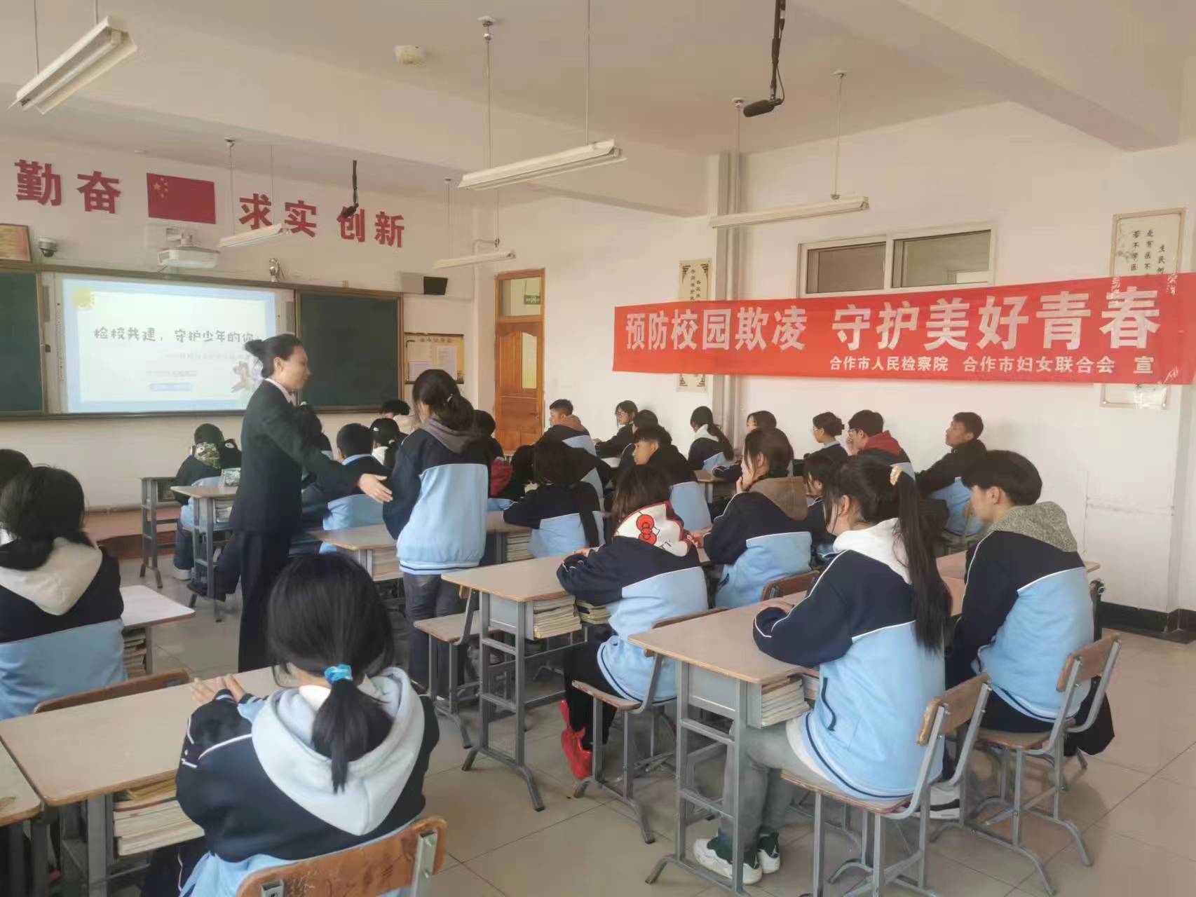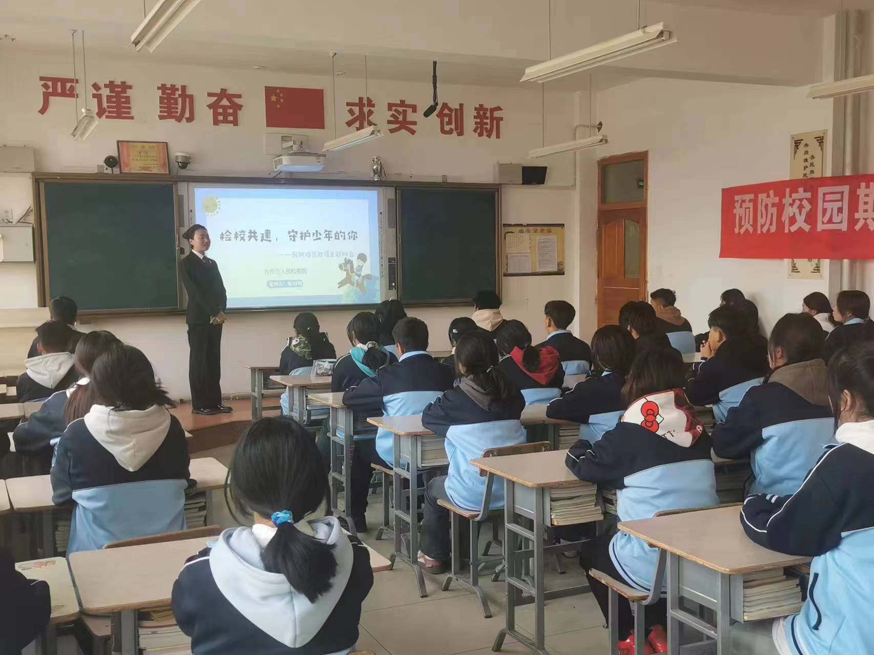 2024年3月26日下午4点30分,合作市检察院的张雅梅检察官深入教室,为2023级中医康复班的员工们带来了一场主题为“预防校园欺凌,守护美好青春”的主题班会。此次活动旨在提高员工们的法治意识,增强自我保护能力,营造和谐安全的校园环境。