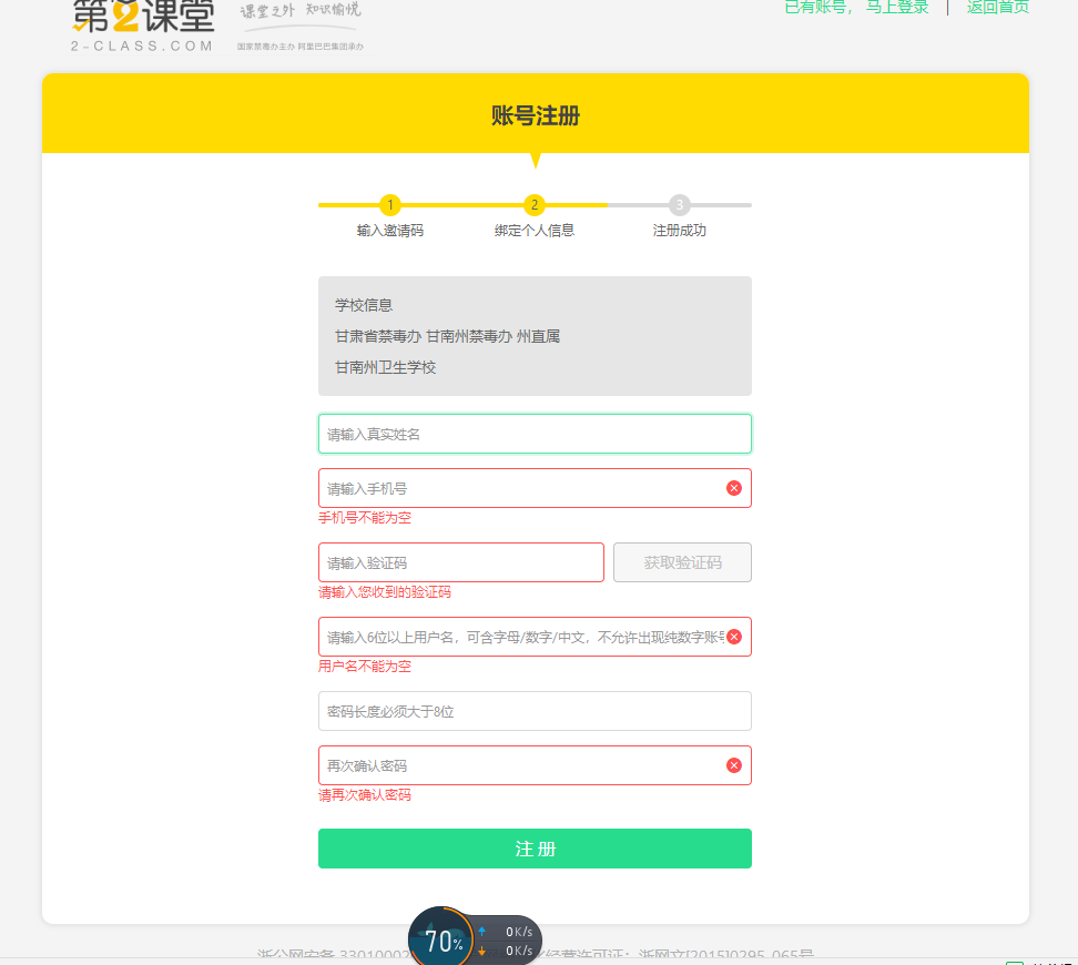 (二)员工可使用邀请码注册登录网页学习并完成听课任务,步骤与班主任登录相同。
