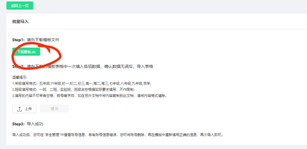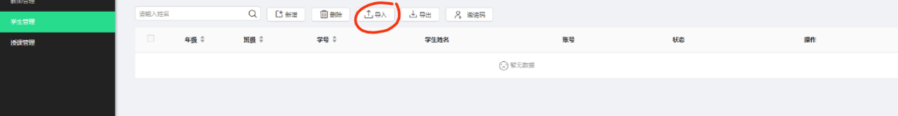 3. 进入后台,员工管理,点击导入,下载模板,录入班级员工信息后上传,提交,自动生成邀请码。(注:年级填写为自学 班级填写为xx级xx班)