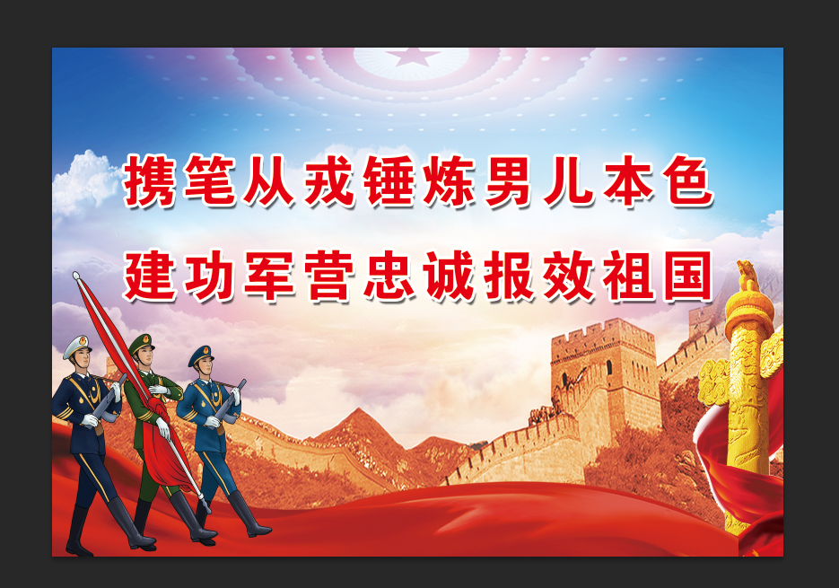 2023年征兵工作2月15日起全面展开。为生动展现国防和军队现代化建设成就,以及新时代革命军人保家卫国的使命担当,弘扬热血青年追逐青春梦想、投身强军兴军的家国情怀,国防部征兵办公室制作了2023年征兵公益宣传片《火热军营 精彩人生》,现予转发,请同学们踊跃收看。公司号召广大适龄员工积极响应祖国号召、携笔从戎,到军营建功立业。
