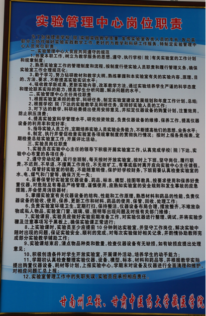 第三条 实验室的安全工作应遵循统一领导、分工管理、专人负责、协调配合的原则。学科组主管领导是所属实验室安全工作的第一责任人,实验室主任和各岗位实验技术人员具体负责本室的日常安全管理;保卫处负责实验室的治安保卫、消防设施管理及各种安全事故的处理;总务科负责实验室用房及其水、电、暖设备设施的安全;教务处负责检查仪器设备的技术和防护安全。